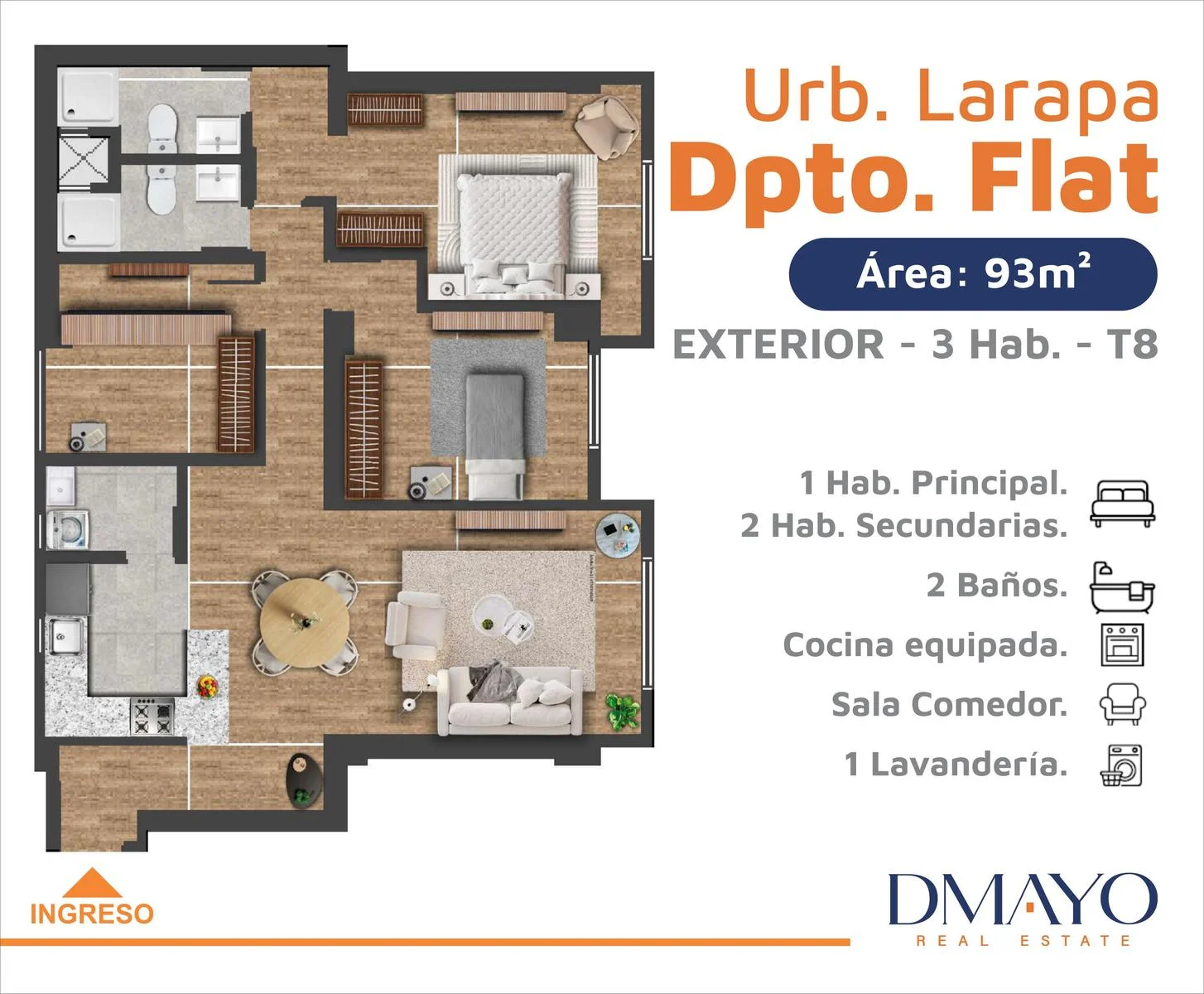 • 3 Dorm. / 2 Baños.