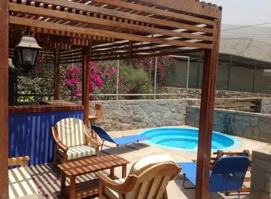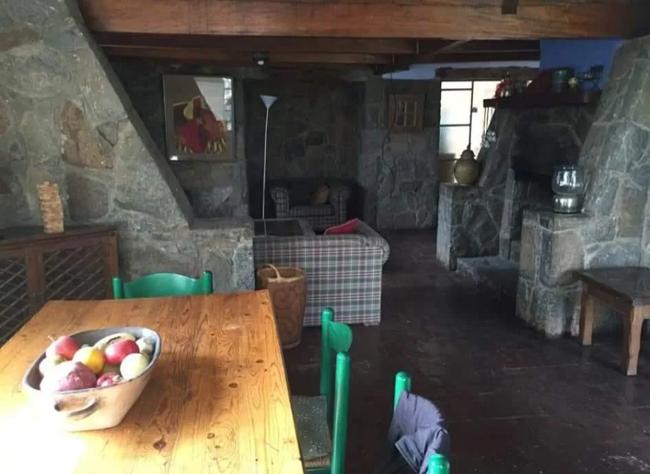 La casa principal cuenta con una excelente distribución y amplios ambientes. Al ingresar, se encuentra un recibidor que da paso a una acogedora sala con chimenea, ideal para reuniones familiares o momentos de relax en invierno. El comedor es amplio y ventilado, con vista al jardín interior. La cocina está completamente equipada con muebles altos y bajos, ofreciendo un espacio funcional y práctico para cocinar. Además, dispone de una cómoda sala de estar y una terraza techada con sol y sombra, perfecta para disfrutar del aire libre en cualquier momento del año.