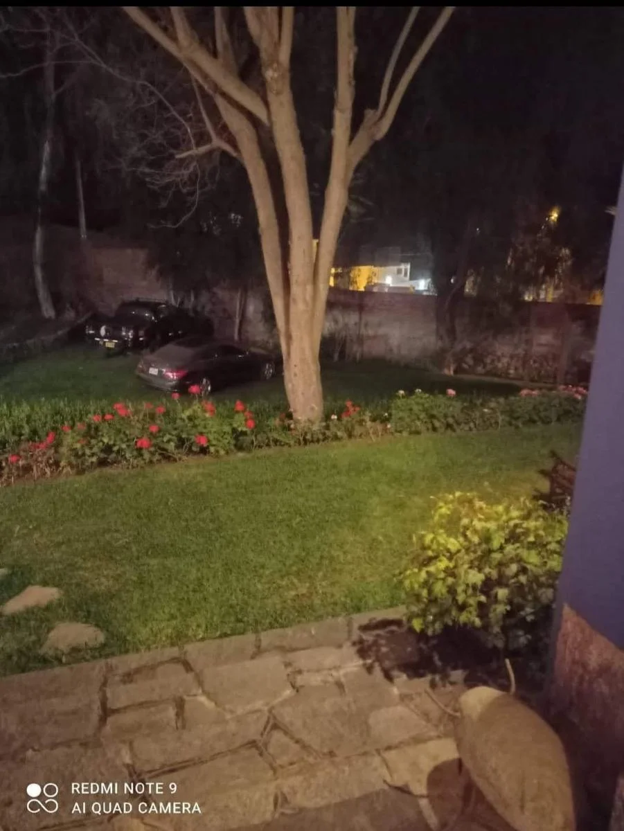 Además, el terreno ofrece espacio para estacionar hasta 6 vehículos y posee jardines bien cuidados tanto en la parte frontal como interior, aportando un ambiente fresco y natural a toda la propiedad.