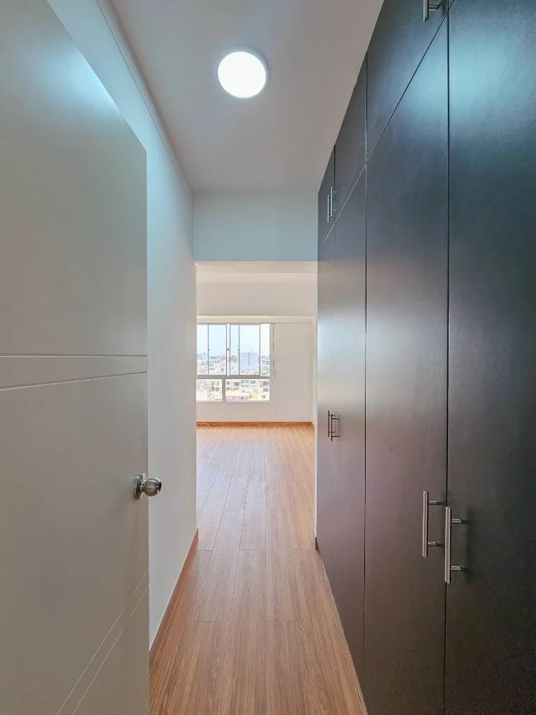 Ubicado en el piso 8 de un edificio de 15 pisos, ofrece ambientes iluminados y una distribución práctica.