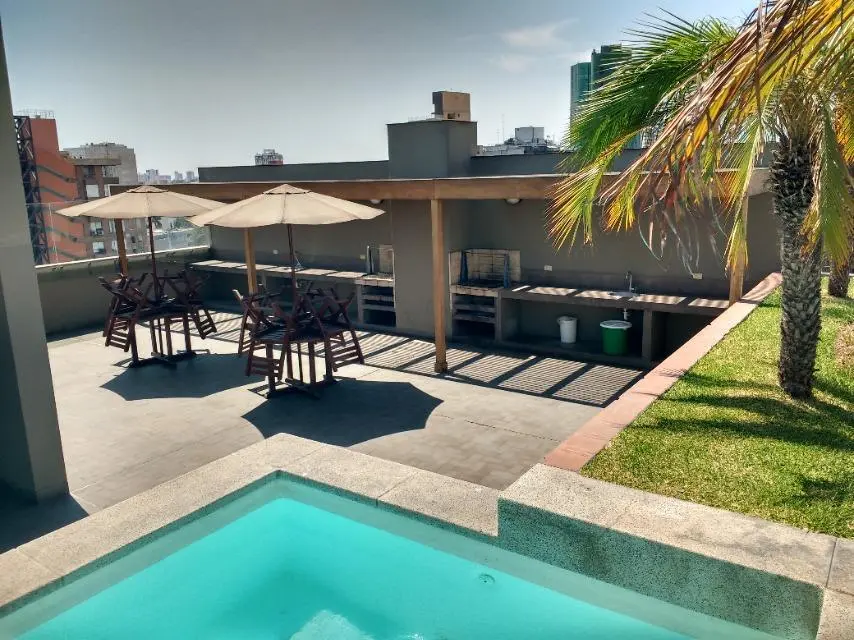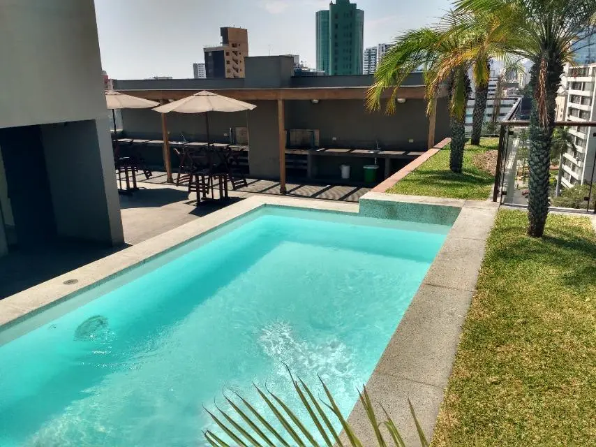 Ideal ejecutivos, extranjeros, empresarios A1. Contrato y/o Carta Presentación Laboral. 8 pisos, amoblado y equipado, 5 años de antigüedad, vista a la calle, moderno, piso 4, 2 departamentos por piso, 19 departamentos en total,  guardianía, flat.  Hall de ingreso, sala, comedor, living-comedor, kitchenette, 1 dormitorio, 1.0 baño, lavandería, 1 depósito, pisos de madera en área social, pisos de madera en área privada.  Terraza, piscina, cochera tipo paralelas en sotano, 1 ascensor, ascensor.  Areas comunes, no mascotas, parrilla, sauna, area de bbq, area sauna, area deportiva, areas verdes, gimnasio, disponible desde el ****.
