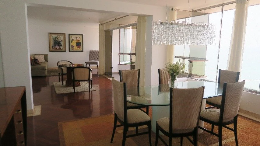 Excelente departamento, frente al mar y larcomar, muy bien ubicado, cerca a restaurantes, casino, centro comerciales. cuenta con terraza 4 camas, 8 pisos, amoblado y equipado, 22 años de antiguedad, vista al mar, impecable, piso 6, 1 departamento por piso, guardianía, flat. Hall de ingreso, sala, comedor, comedor de diario, cocina, escritorio, sala de estar, 3 dormitorios, 3.0 baños, 1 baño incorporado, 1 cuarto de servicio, 1 baño de servicio, lavandería, pisos de madera en área social, pisos de alfombrado en área privada. Terraza, 2 cocheras tipo paralelas techadas, ascensor directo. Permite mascotas, patio, disponible desde el ****.