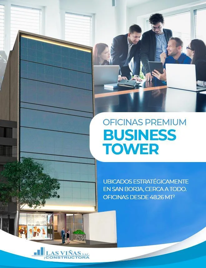 El BUSINESS TOWER 2534, es un moderno Centro Empresarial de 9 pisos que cuenta con 22 oficinas y 1 local comercial, 1 semi sótano y 3 sótanos para 27 estacionamientos.