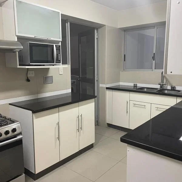 Alquilo departamento 3 dorm en primer piso con un jardín y área para parrillas . Cuenta con línea blanca Tiene un área de 200 mts 3 dorm 2,5 baños dorm principal con walking closet Sala comedor amplia con salida a jardín propio del departamento y área de parrilla 2 cocheras Alquiler $1200 Llamar Sra shilla Fuxman al ****