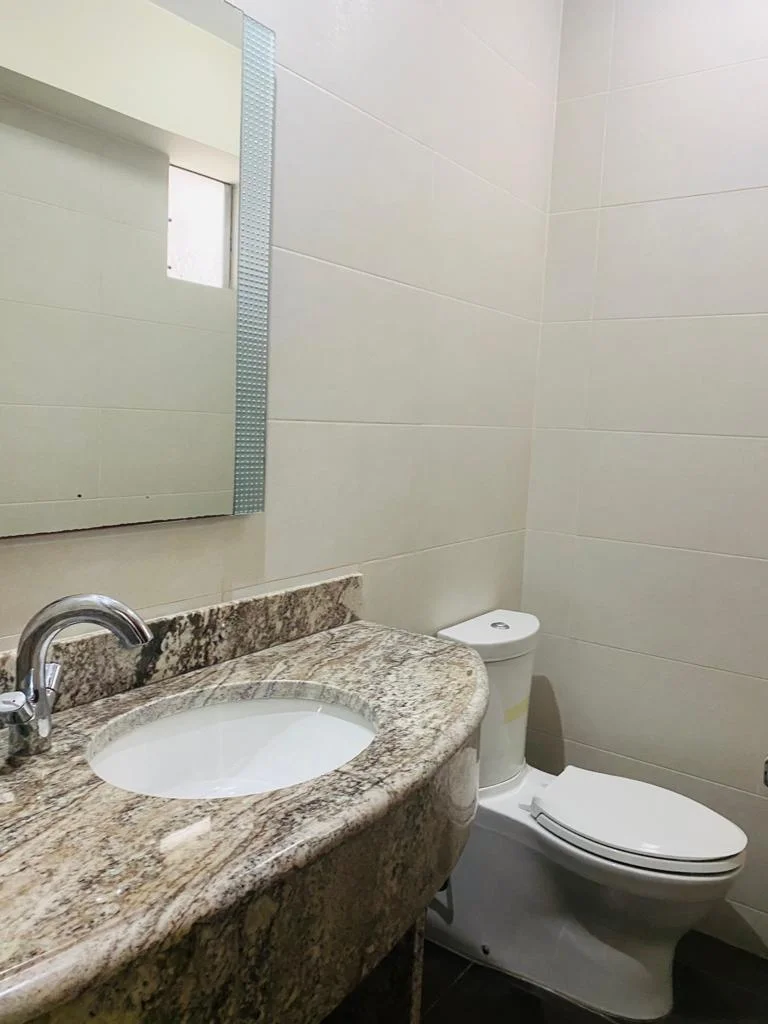 Hall de ingreso, sala comedor con terraza, cocina, área de lavandería amplia, cuarto y baño de servicio, pisos de granito italiano en área social y pisos de madera en área privada, baño de visita, tres dormitorios, el principal con baño incorporado y walking closet, sala de estar que conecta las tres habitaciones, baño completo para los dos dormitorios secundarios.