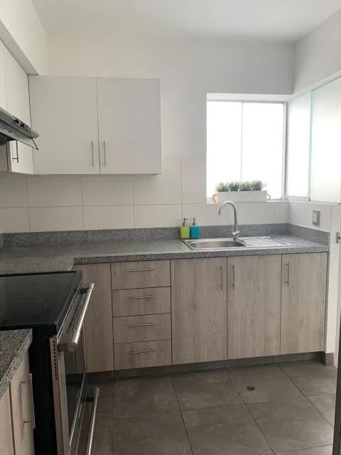 Vale la pena verlo!! 9 pisos, amoblado y equipado, 8 años de antiguedad, vista a la calle, en muy buen estado, piso 3, 4 departamentos por piso, 32 departamentos en total, guardianía, flat. Sala, comedor, cocina, 3 dormitorios, 2.5 baños, 1 baño incorporado, 1 cuarto de servicio, 1 baño de servicio, lavandería, pisos de laminado en área social, pisos de alfombrado en área privada. Terraza, cochera tipo estacionamiento(s), 2 ascensores, ascensor. No mascotas, walk-in closet, disponible desde el ****.