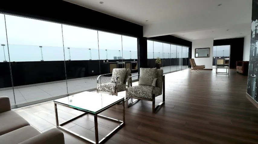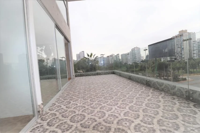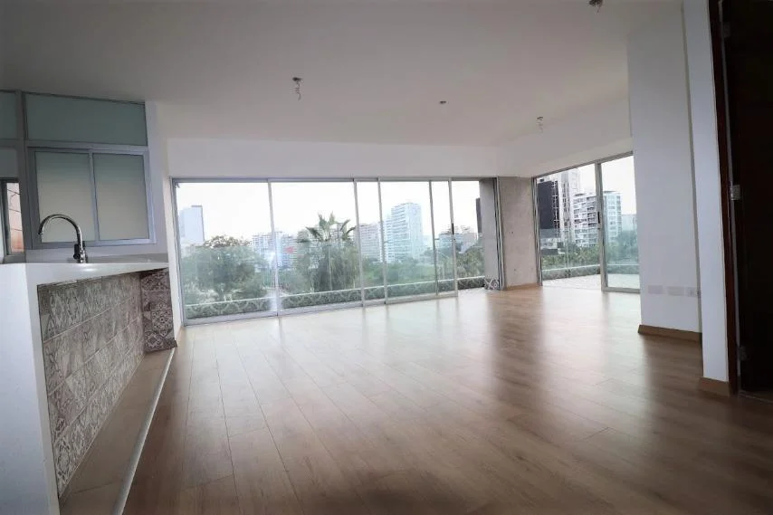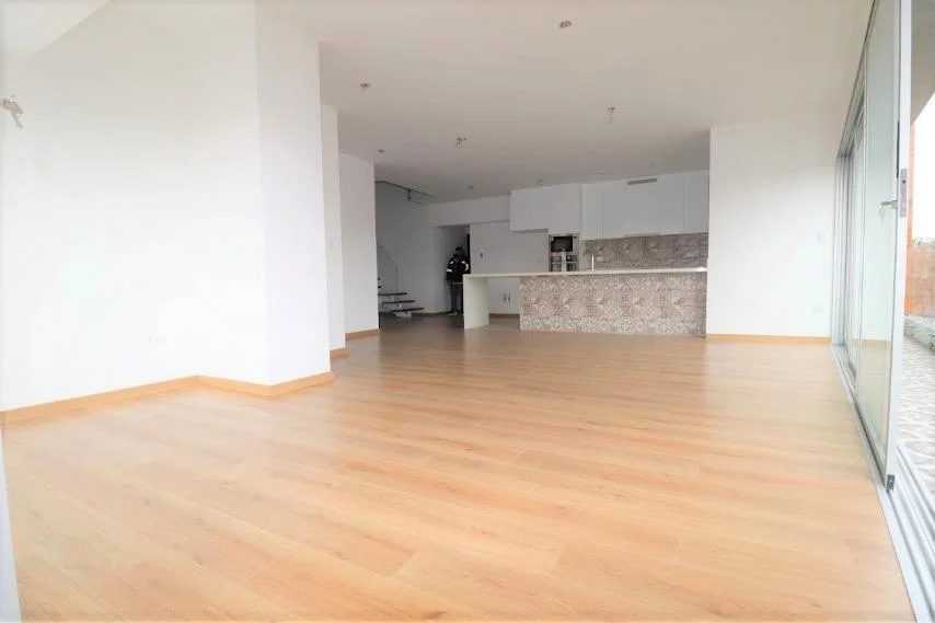 Cocina abierta tipo americana con linea blanca instalada. Amplia terraza conectada con la sala comedor. 175 m2 de área total. Se alquila semi amoblado.