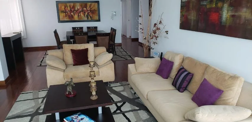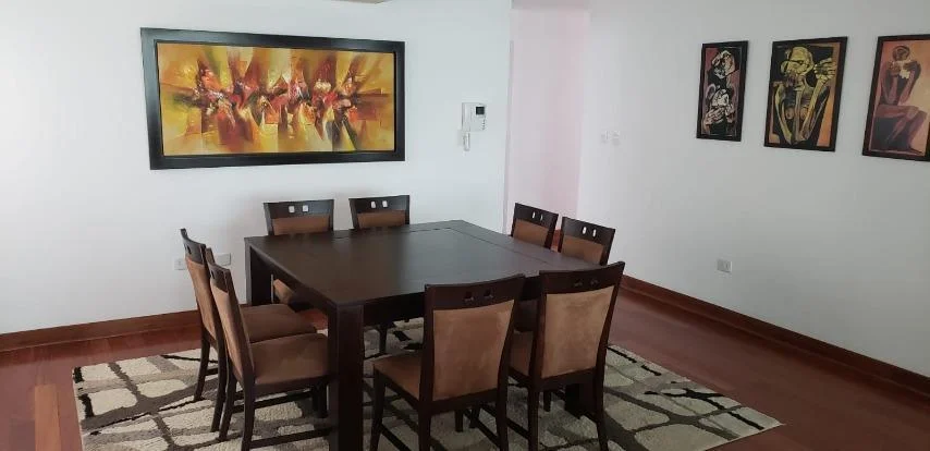 Departamento tipo flat en buen estado, full amoblado y equipado, pisos de madera en área social y privada. Vista al mar desde sala, terraza/balcón, dormitorios. Situada en Malecón de La Marina frente a parque. El edificio tiene 8 años de antigüedad, 3 departamentos por piso, 18 departamentos en total. Ingreso directo de Propietarios por Calle Manuel Tovar Amoblado y equipado, 8 años de antiguedad, vista al mar, en muy buen estado, flat. Hall de ingreso, sala, comedor, comedor de diario, cocina, 3 dormitorios, 2.5 baños, 1 baño incorporado, 1 cuarto de servicio, 1 baño de servicio, lavandería, pisos de madera en área social, pisos de madera en área privada. Terraza, 2 cocheras tipo en línea en sótano, ascensor directo, ascensor de servicio. Aire acondicionado, no mascotas, walk-in closet, disponible desde el ****.