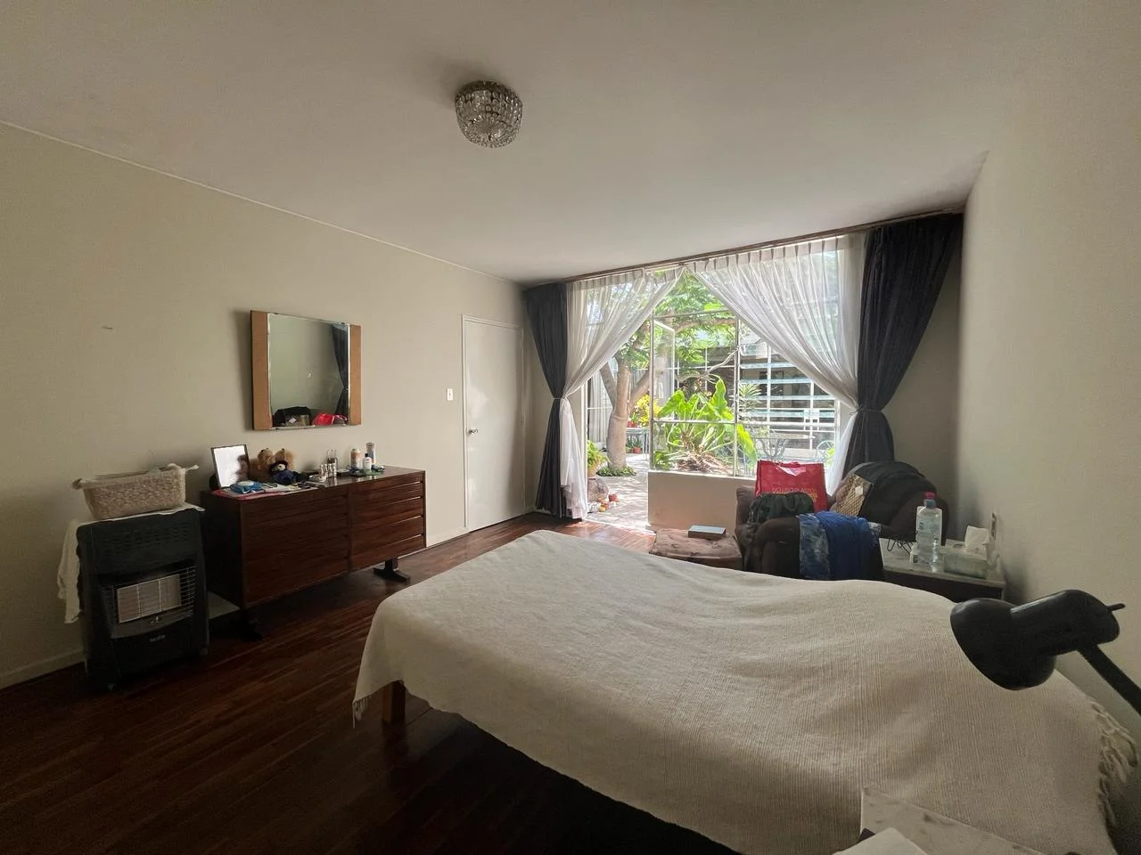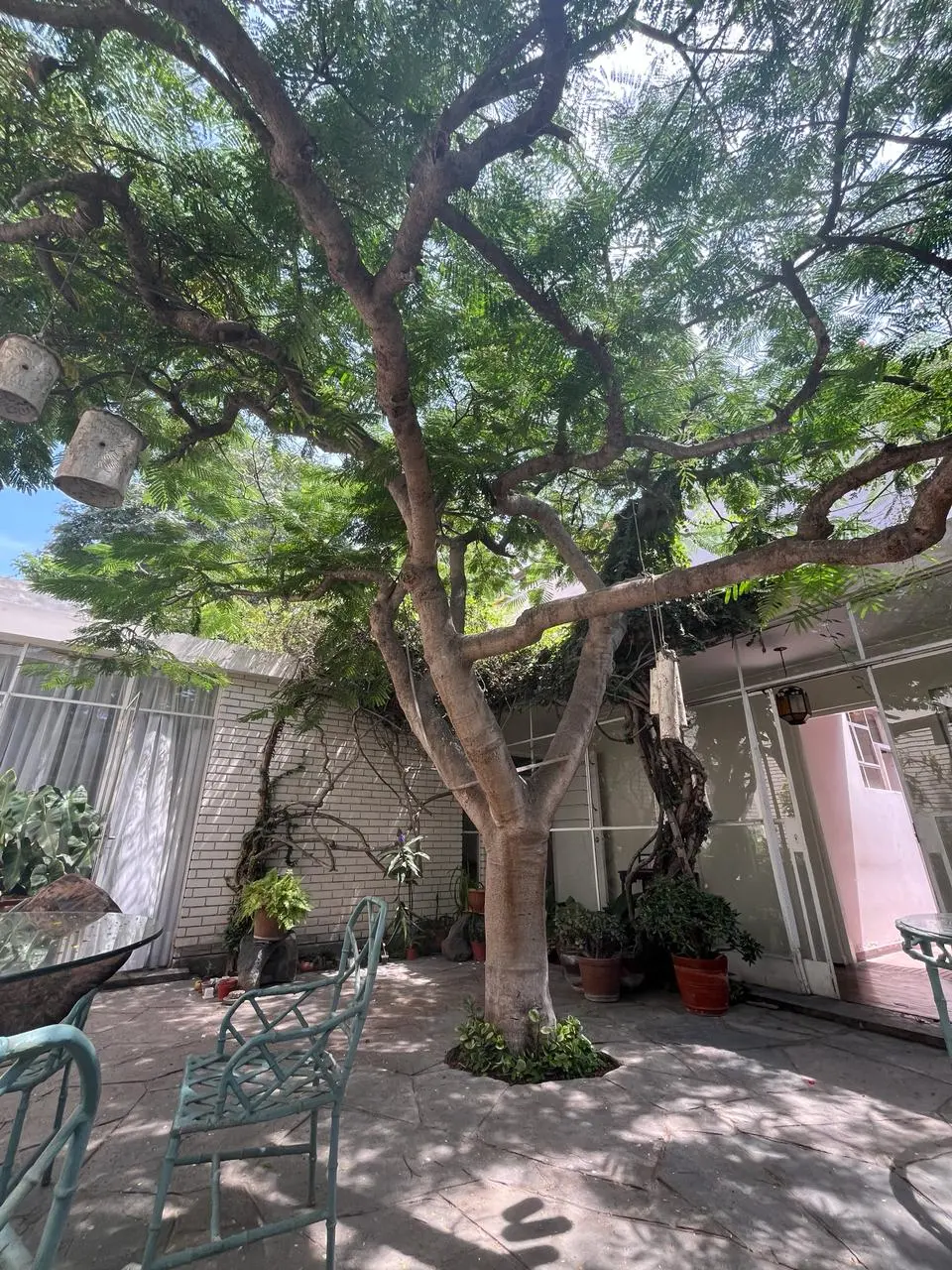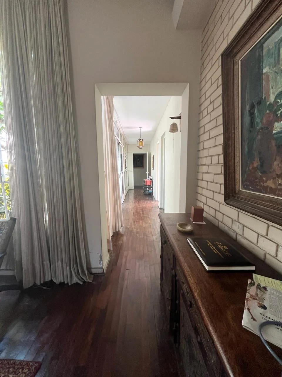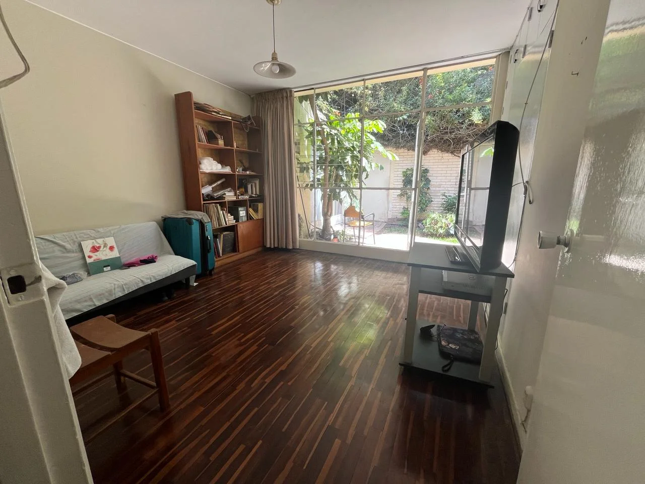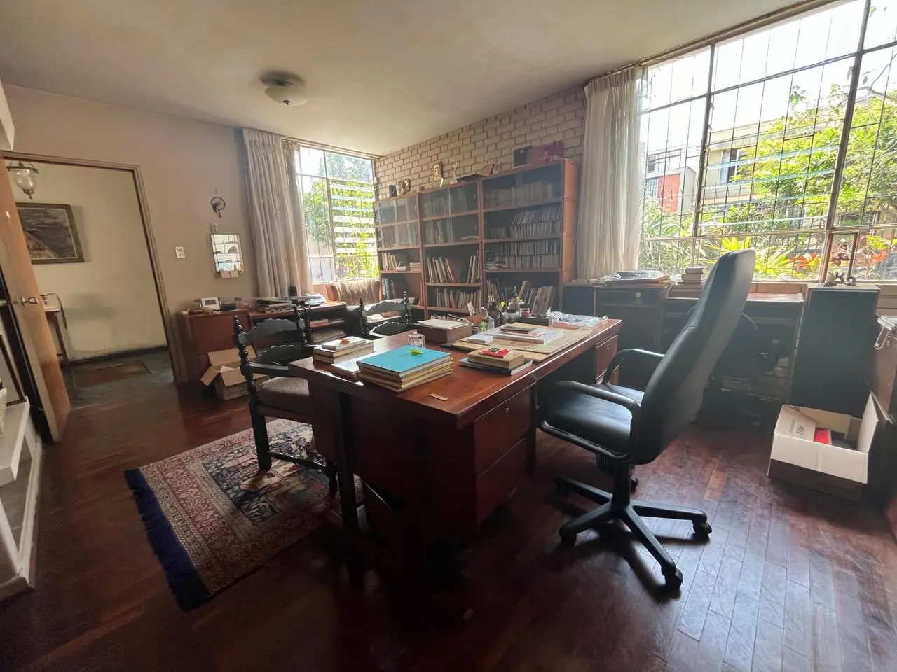 Estudio, sala, comedor, baño de visita, hall de distribución, un hermoso patio central que da vista a la sala, dormitorio y hall.