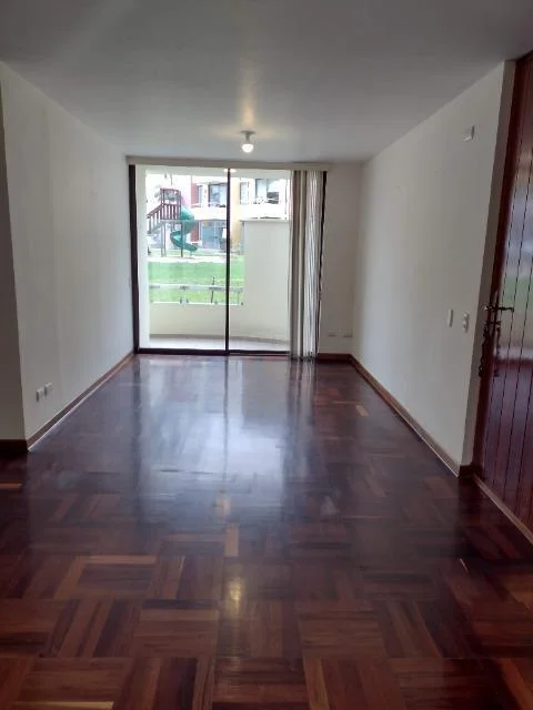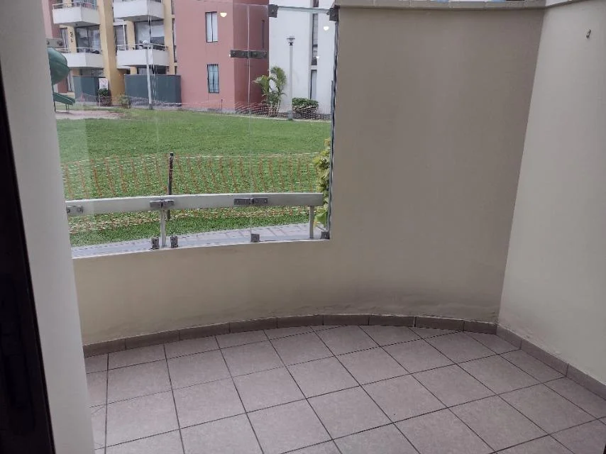 GAS CENTRALIZADO CALIDDA Sin muebles, 11 años de antiguedad, vista a jardínes, en buen estado, piso 1, 4 departamentos por piso, 16 departamentos en total, guardianía, flat. Sala, comedor, cocina, 3 dormitorios, 2.5 baños, 1 baño incorporado, 1 cuarto de servicio, lavandería, pisos de madera en área social, pisos de madera en área privada. Terraza, 2 cocheras, ascensor. Areas comunes, permite mascotas