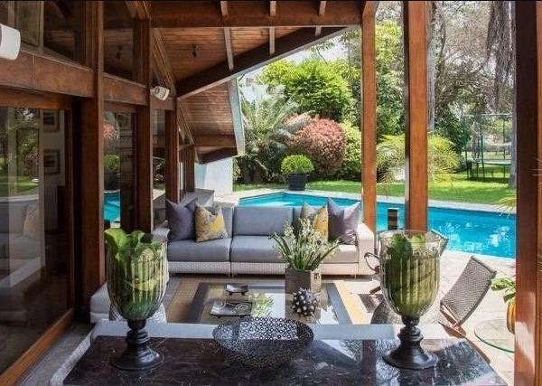 Se ofrece una casa espectacular con impresionantes vistas al campo de golf y total privacidad El inmueble se vende con algunos muebles y electrodomsticos incluidos Adems existe la opcin de alquilarla y cuenta con un dormitorio independiente con acceso propio La casa se distribuye en dos pisos e incluye un hall de ingreso dos salas comedor comedor de diario lavandera escritorio estar familiar cuatro dormitorios con walkin closets y tres baos incorporados Tambin dispone de seis cocheras pisos de madera un jardn interior piscina y rea de parrilla