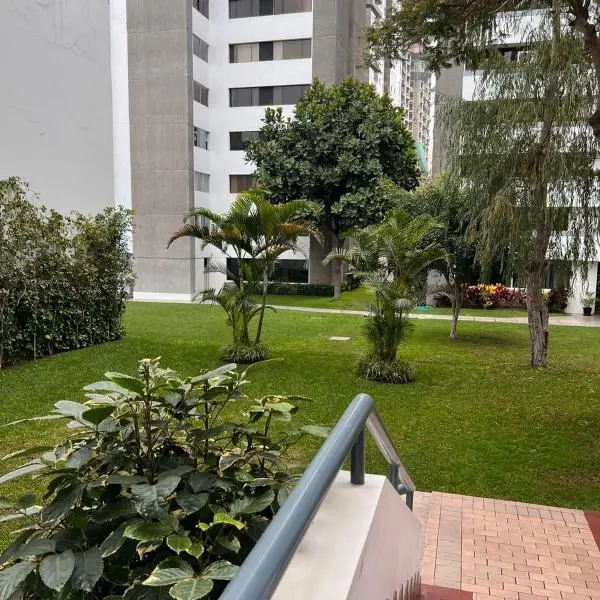 Dúplex ubicado cerca a la calle libertadores con linda zona verde interna y salón de reuniones. En el piso de ingreso tienes el baño de visita, sala comedor y barra. Cocina, lavandería y baño de servicio. En el piso de abajo se ubican los dormitorios. Cuarto principal amplio con vista al Jardín privado del edificio. Los dormitorios comparten baño. Pequeña sala de estar y closets. Tipo de cambio referencial S/3.90. Sujeto a variación
