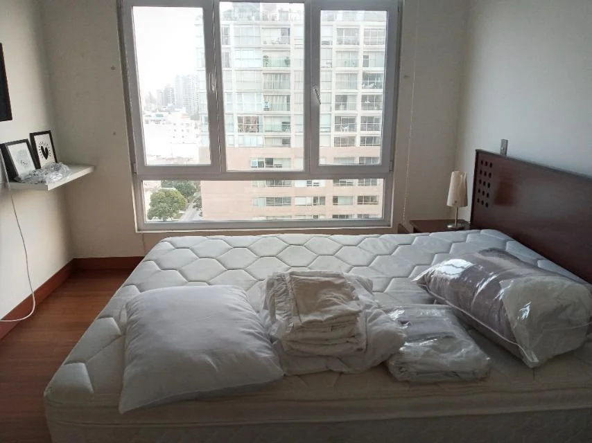 16 pisos, amoblado y equipado, 5 años de antiguedad, vista a la calle, impecable, piso 13, 2 departamentos por piso, 50 departamentos en total, guardianía, flat. Comedor de diario, living-comedor, sala de estar, 2 dormitorios, 2.5 baños, 1 baño incorporado, 1 cuarto de servicio, 1 baño de servicio, lavandería, pisos de laminado en área social, pisos de laminado en área privada. Terraza, cochera tipo techada, 2 ascensores, ascensor. Areas comunes, permite mascotas, walk-in closet, area de bbq, areas verdes, disponible desde el ****.