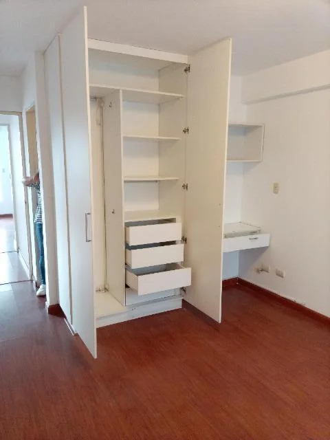 Mantenimiento s/.400 soles aprox. 7 pisos, sin muebles, 8 años de antiguedad, vista a la calle, en muy buen estado, piso 3, guardianía, flat. Living-comedor, cocina, 2 dormitorios, 2.0 baños, 1 baño incorporado, lavandería, 1 depósito, pisos de madera en área social, pisos de madera en área privada. Cochera tipo techada, ascensor. Permite mascotas, walk-in closet, disponible desde el ****.