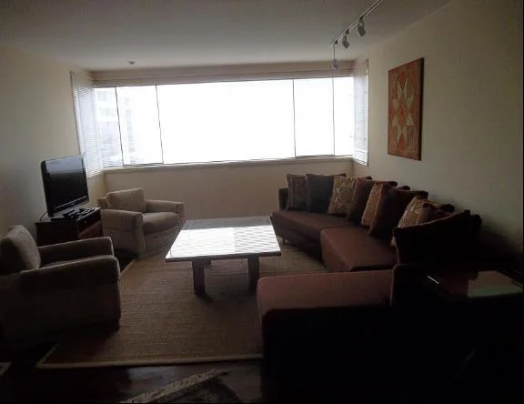 1 COCHERA Amoblado y equipado, 20 años de antiguedad, vista al golf, remodelado, piso 21, 2 departamentos por piso, guardianía, flat. Sala, comedor, cocina, escritorio, 3 dormitorios, 2.5 baños, 1 cuarto de servicio, 1 baño de servicio, lavandería, pisos de madera en área social, pisos de madera en área privada. Cochera tipo en línea en sótano, 2 ascensores, ascensor. Areas comunes, permite mascotas, areas verdes, disponible desde el ****.