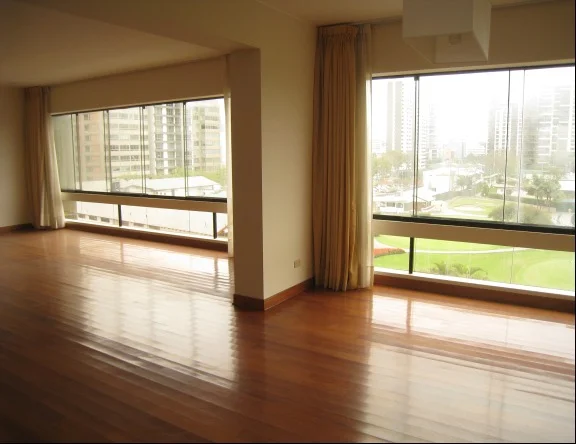 Finos departamentos con linda vista al Golf, cuentan con. Sala, comedor, comedor de diario, cocina, sala de estar, 4 dormitorios, 4.5 baños, 4 baños incorporados, 1 cuarto de servicio, 1 baño de servicio, lavandería, 1 depósito, pisos de madera en área social, pisos de madera en área privada.