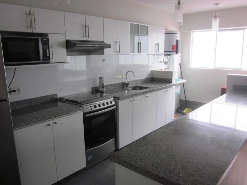 Amoblado y equipado, 7 años de antiguedad, zona tranquila, en muy buen estado, piso 1, guardianía, flat. Hall de ingreso, comedor, kitchenette, 2 dormitorios, 2.0 baños, 1 baño incorporado, lavandería, 1 depósito. Cochera tipo techada, 2 ascensores, ascensor. Areas comunes, permite mascotas, disponible desde el ****.