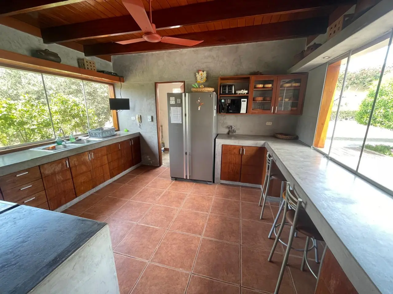 La cocina, completamente equipada con muebles altos y bajos, está diseñada para quienes disfrutan de la gastronomía. Un comedor de diario, lavandería, patio interior y un cuarto y baño de servicio complementan la funcionalidad de la casa.