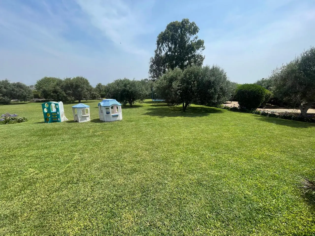 La terraza exterior es un verdadero refugio, con una área de BBQ, fogón y horno, ideales para disfrutar de agradables reuniones al aire libre. La piscina rodeada de jardines es el lugar perfecto para relajarse y disfrutar de los cálidos días, mientras los campos de olivos brindan un paisaje único y tranquilo.
