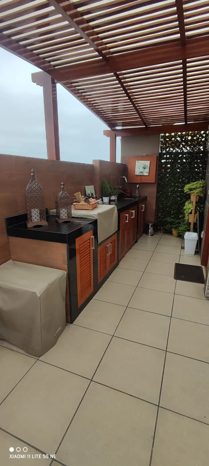 Sala de estar; baño completo; amplia terraza techada con sol y sombra; zona de parrilla y bar.