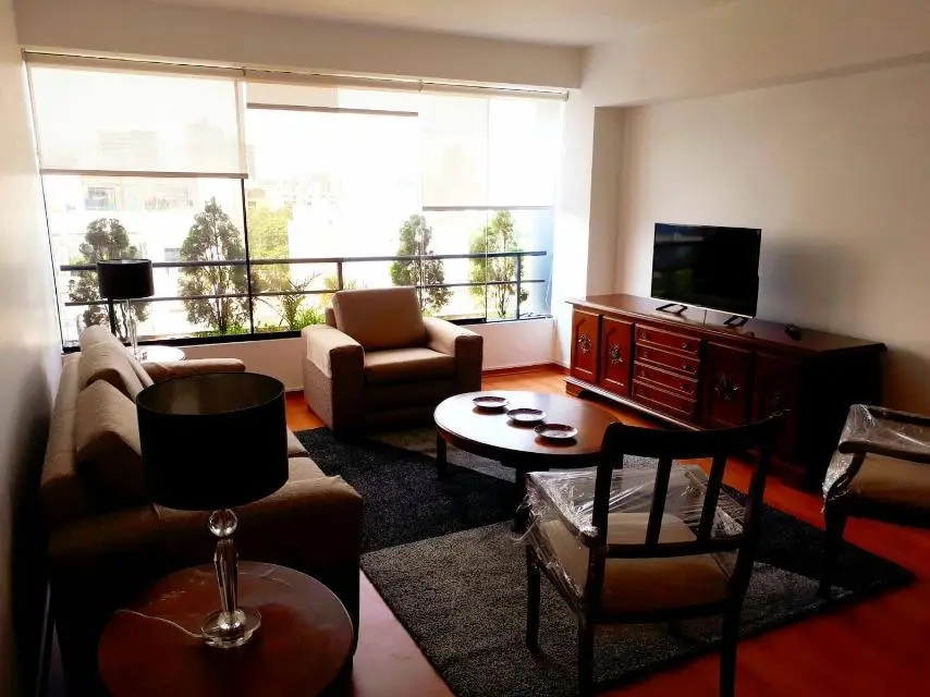 Permite mascota pequeña. 8 pisos, amoblado y equipado, 20 años de antiguedad, vista a la calle, remodelado, piso 8, 2 departamentos por piso, 16 departamentos en total, guardianía, flat. Sala, comedor, comedor de diario, cocina, 2 dormitorios, 2.0 baños, 1 baño incorporado, 1 cuarto de servicio, 1 baño de servicio, lavandería, pisos de laminado en área social, pisos de laminado en área privada. 2 cocheras tipo en línea techadas, ascensor directo, ascensor de servicio. Permite mascotas, walk-in closet, disponible desde el ****.