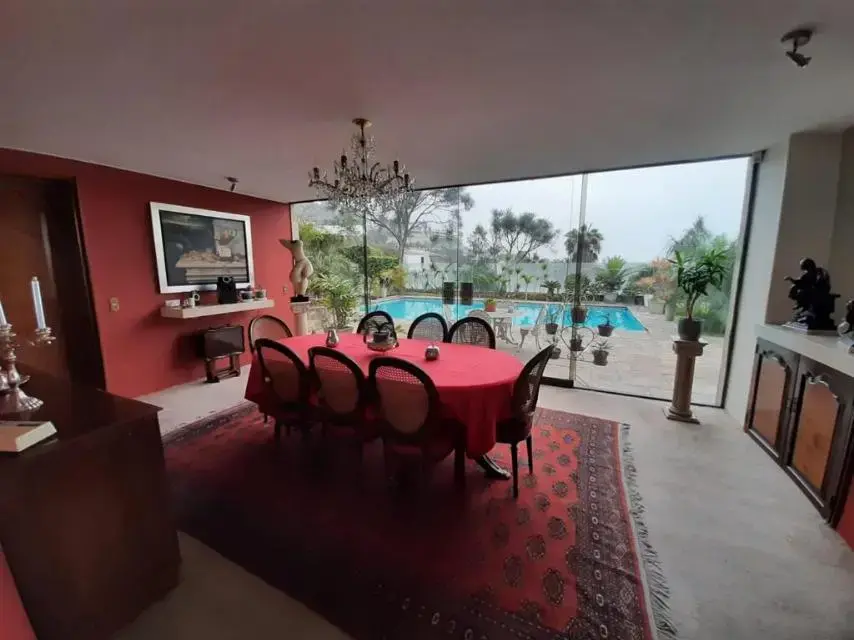 Cuenta con varios ambientes, salas, escritorio, cocina con isla, piscina, jardin por todos los lados de la casa. Es ideal para diplomaticos