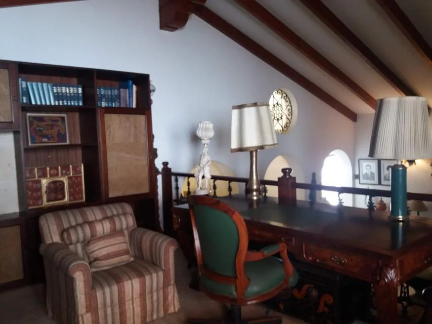 42 años de antiguedad, vista a la calle, en muy buen estado, en desniveles. Hall de ingreso, 2 salas, comedor, comedor de diario, cocina, escritorio, sala de estar, 4 dormitorios, 3.0 baños, 2 baños incorporados, 1 cuarto de servicio, lavandería, pisos de madera en área social, pisos de alfombrado en área privada. Terraza, 3 cocheras tipo techada. Patio, parrilla, chimenea, disponible desde el ****.