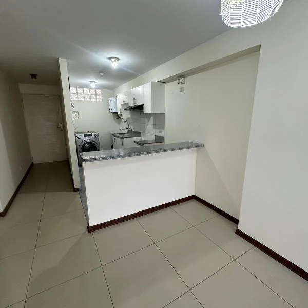 En alquiler bonito departamento de habitaciones Sala comedor muy amplia con balcn Cocina estilo americana con barra y espacio para lavandera viene con lavadora Habitacin principal cuenta con su propio bao Bao completo para habitaciones secundarias Ubicado en el piso