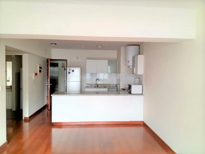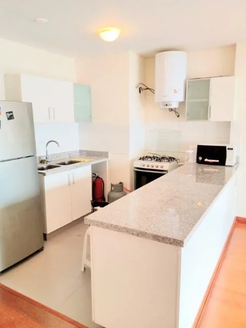 Sala-comedor, Kitchenette, 1 dormitorio, 1 baño completo, espacio para lavadora, closet de ropa blanca.