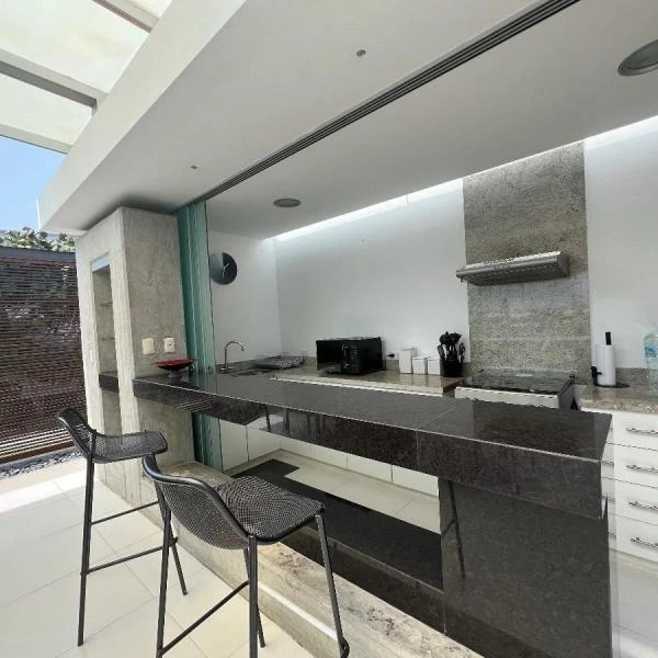 Toda la casa de un solo un piso es orientada hacia al mar Sala comedor y cocina tienen vista al mar y se pueden integrar los ambientes corriendo las mamparas Todos los ambientes son bien ventilados y iluminados Se siente la brisa del mar La terraza espectacular tiene piso de madera tipo sundeck y piscina
