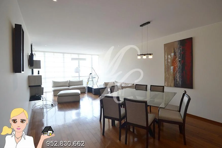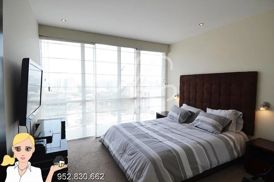 Precioso departamento con una superficie de 180m2 completamente amoblado y equipado con tres amplios dormitorios en prestigioso edificio frente al golf de San Isidro; esta propiedad dispone de :