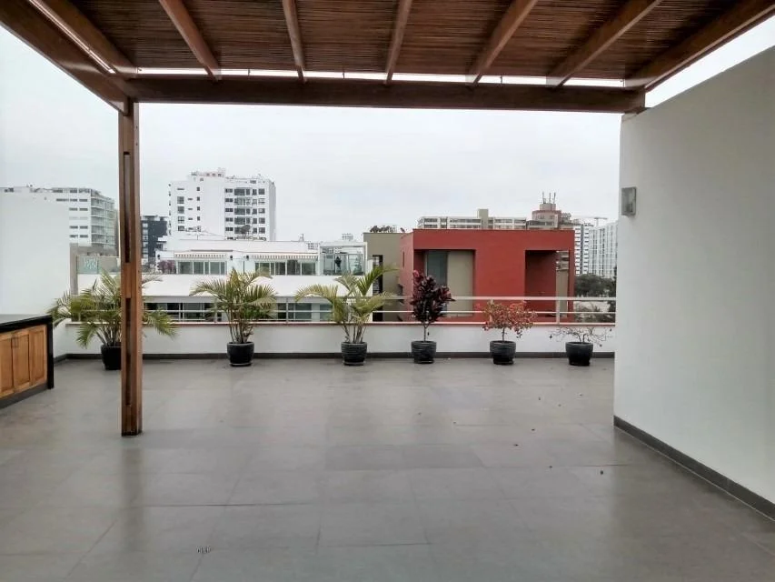 Segundo piso: Sala de estar, escritorito con closet, Dorm secundario (también podría funcionar como dormitorio principal) baño completo afuera del dormitorio, Terraza amplia con BBQ, lavandería, cuarto y baño de servicio.
