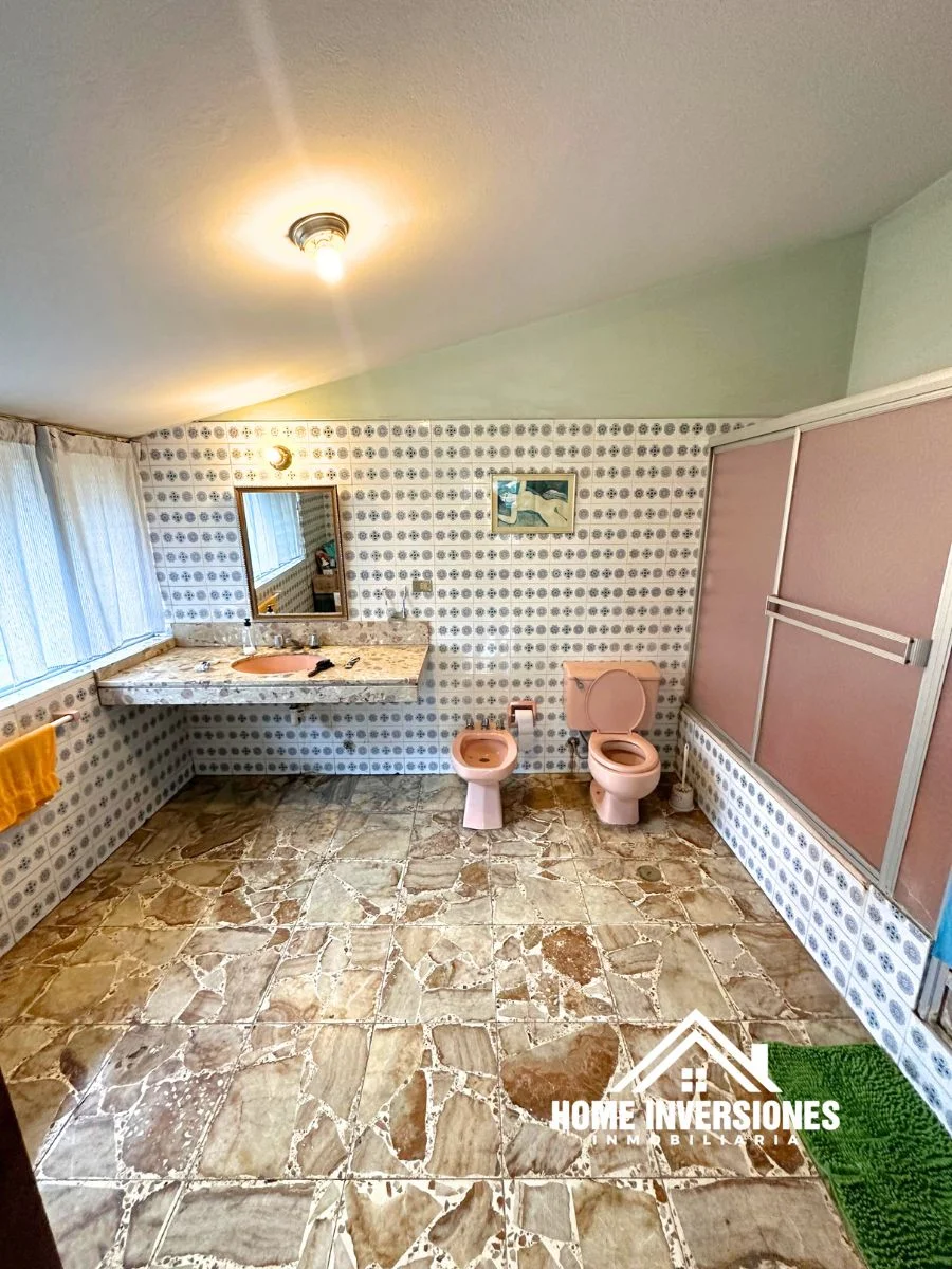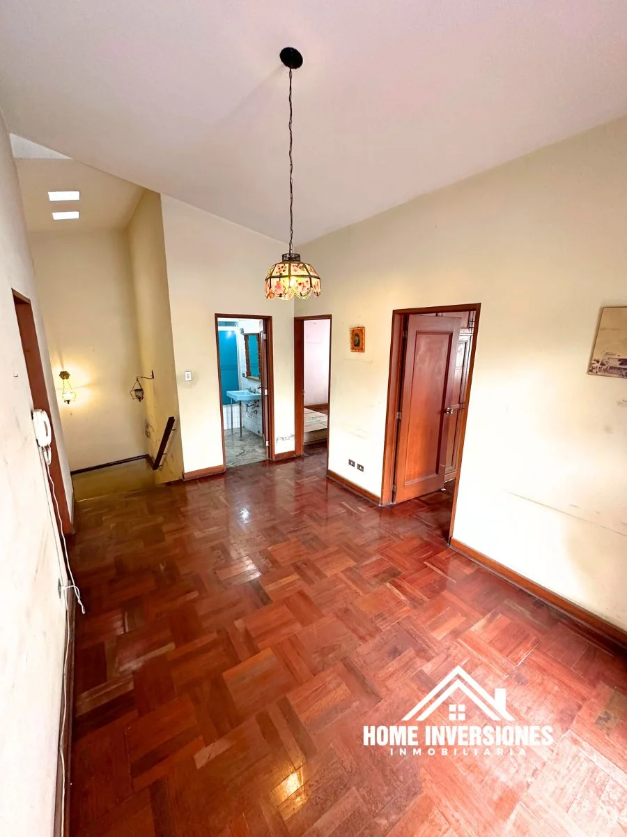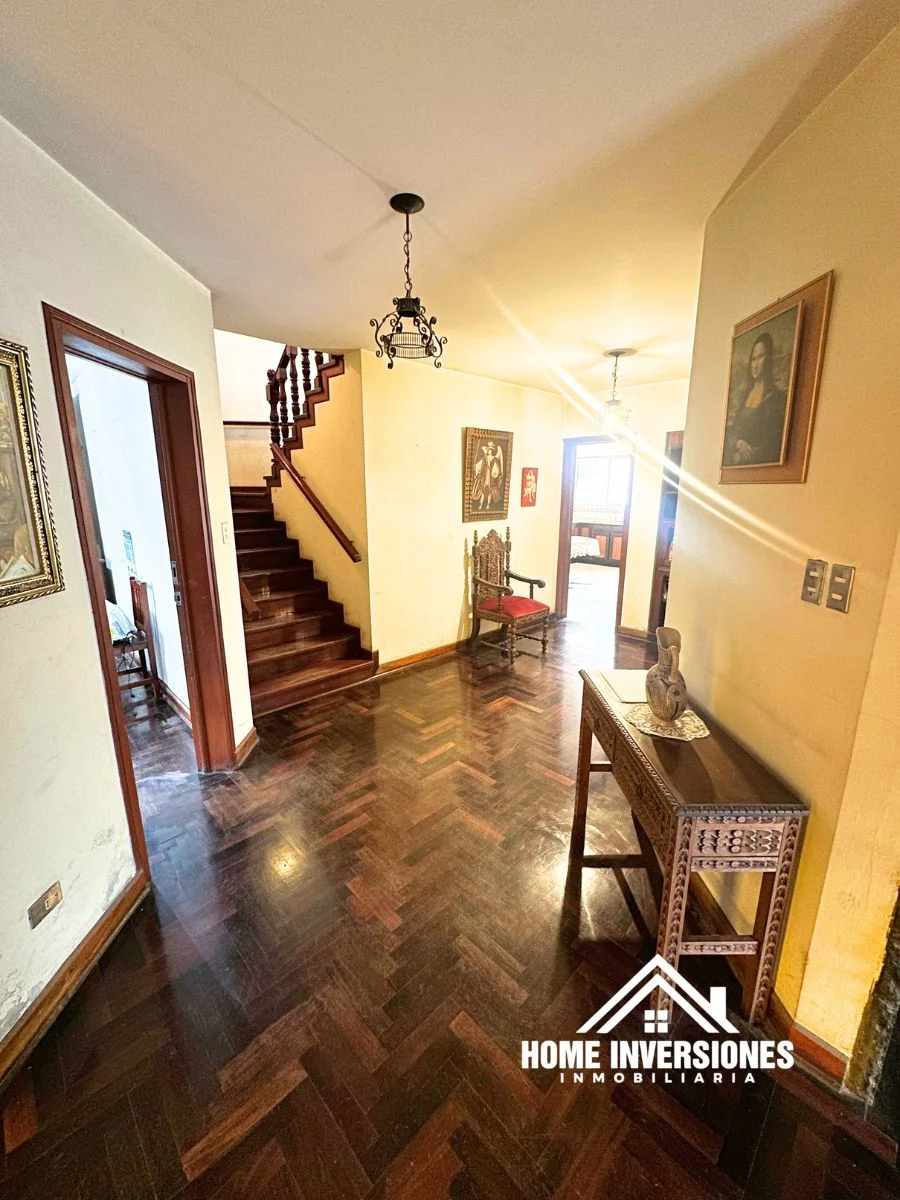 - Piso 1: Ingresamos a la propiedad y encontramos un hall de recepción, sala con chimenea, comedor, y cocina cerrada con alacena. Cuarto de estudio, medio baño de visitas y área bar. Tanto la cocina y sala cuenta con acceso al jardin posterior.