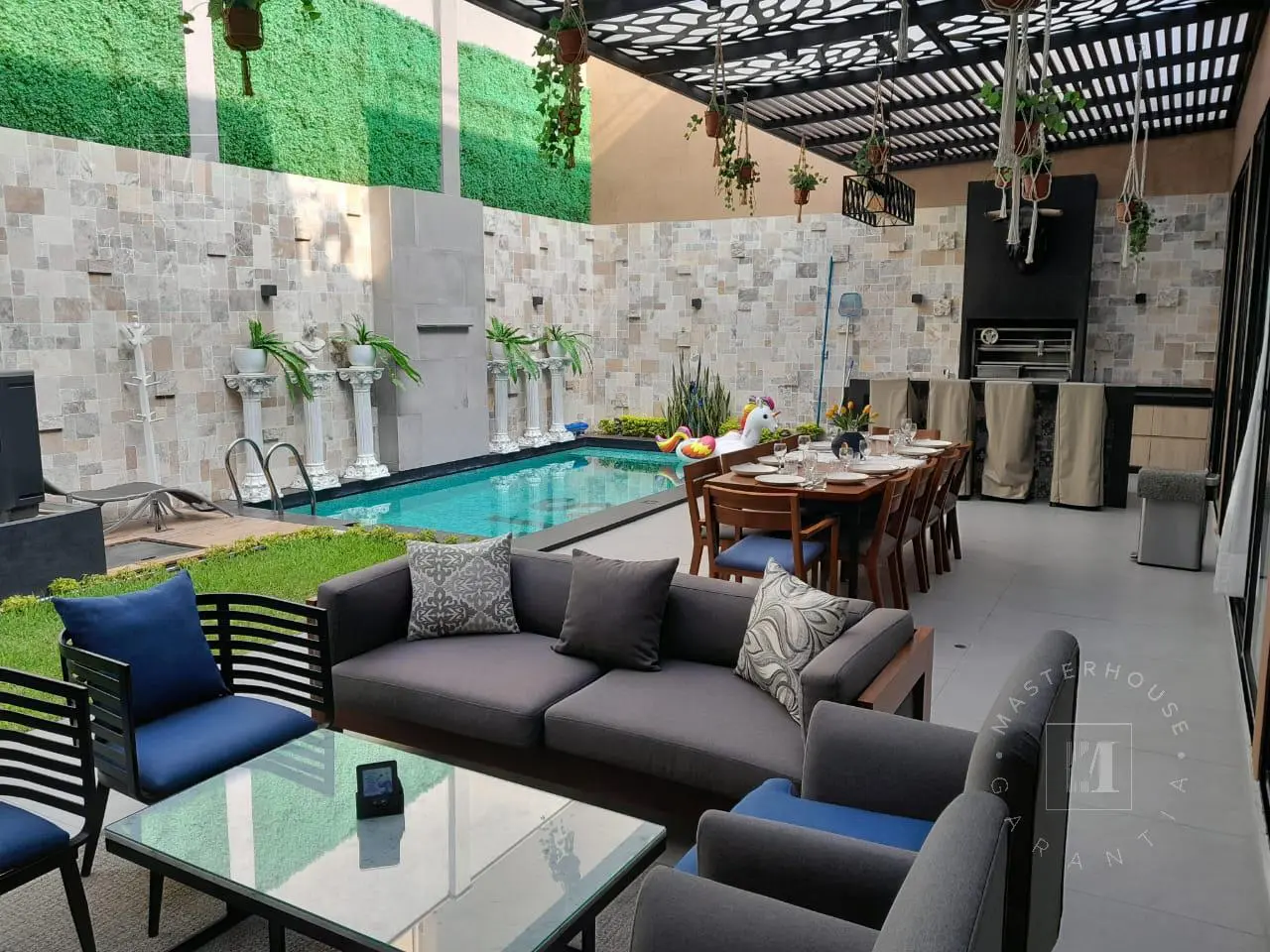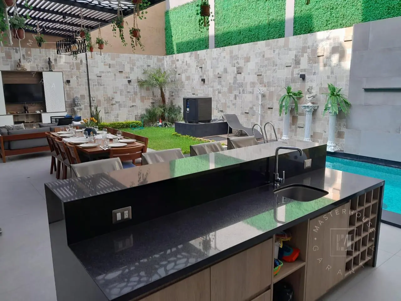 Terraza con bar y horno de barro.