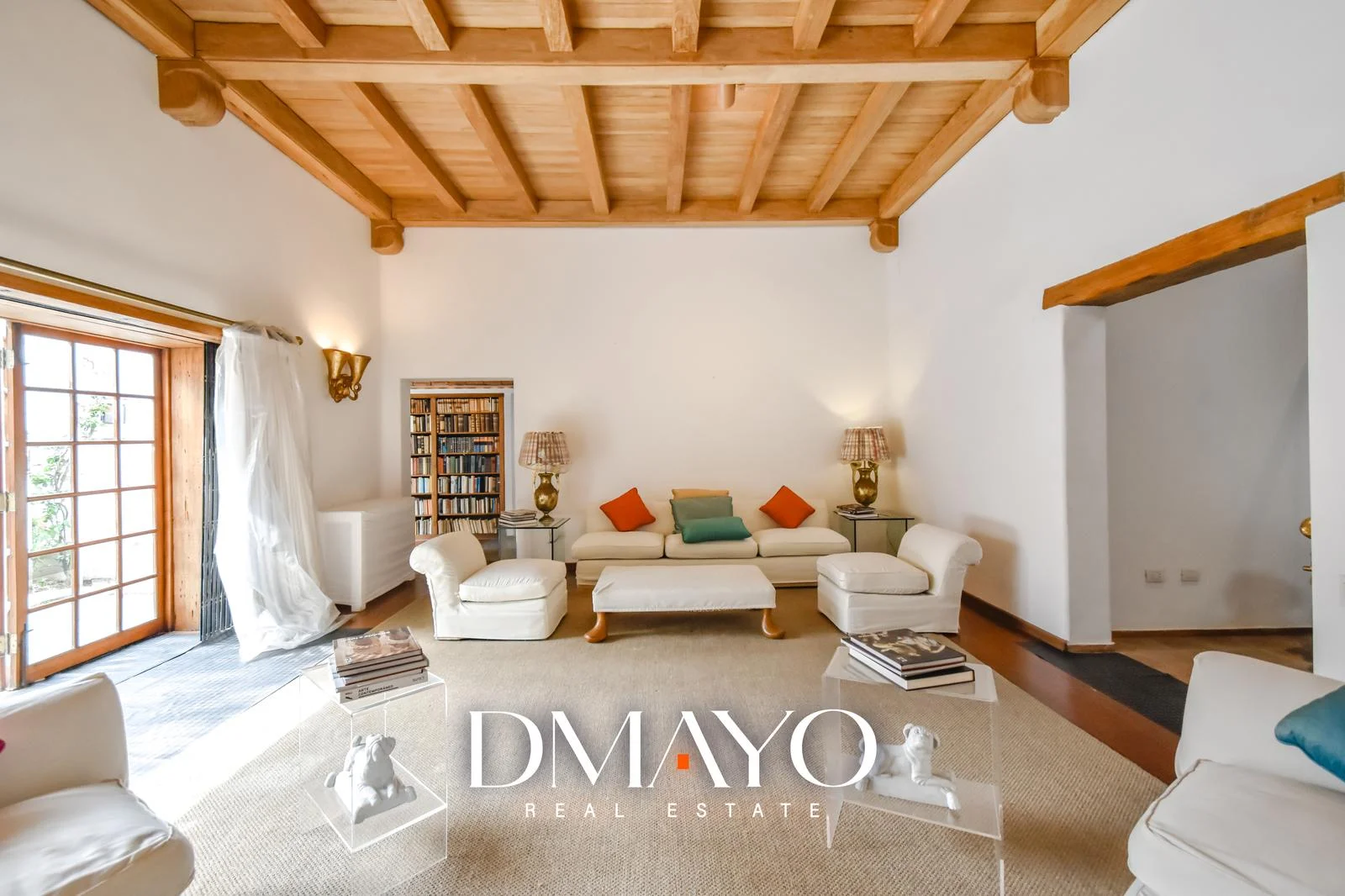 Diseño y Acabados: Con finos acabados y altos techos, esta casa destaca por sus pisos de madera Oregon y una elegante chimenea que añade un toque de sofisticación a la amplia sala.