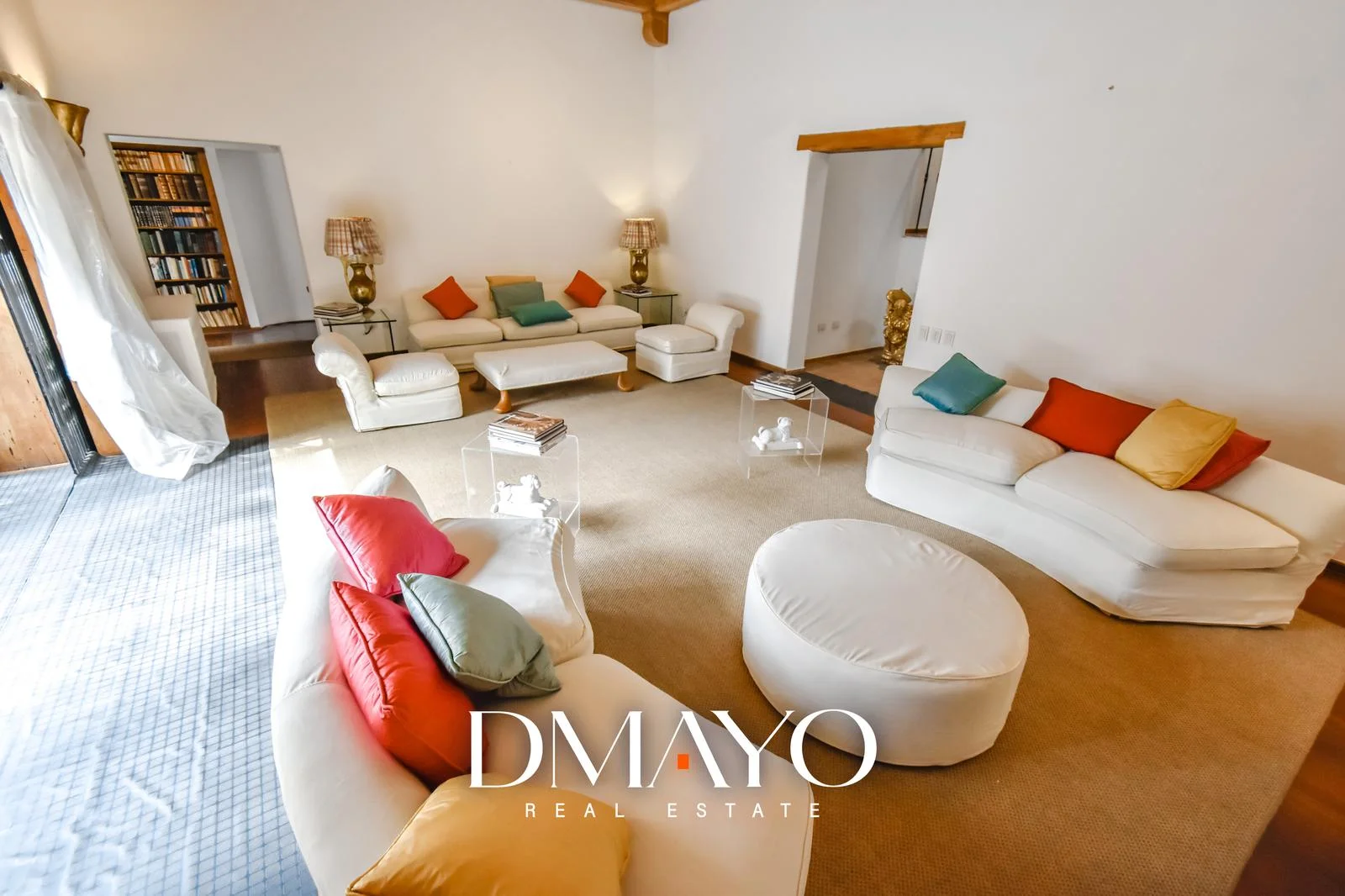Primer Piso: Dispone de cochera, depósito, un patio de recibo con una hermosa jardinería, y una sala principal con vista a la terraza. El dormitorio principal incluye un baño incorporado. En este piso hay una galería convertida en biblioteca con vistas a la terraza.
