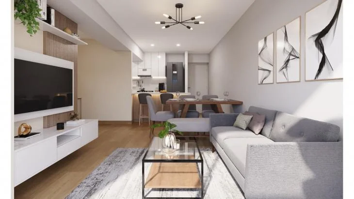 Al ingresar a las modernas unidades habitacionales, te recibirá una espaciosa sala-comedor que fusiona con elegancia dos de los espacios más relevantes del hogar. Un balcón privado amplía el espacio habitable y ofrece un rincón tranquilo para relajarse, mientras que la cocina, diseñada con estilo y funcionalidad, se presenta como un escenario perfecto para disfrutar de deliciosas comidas en el propio hogar.