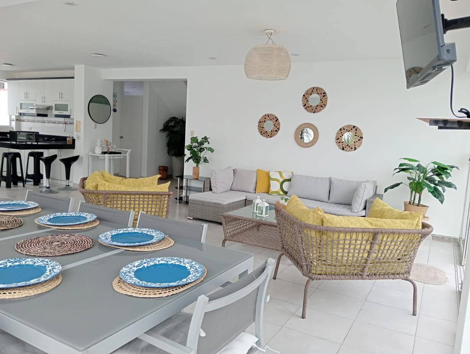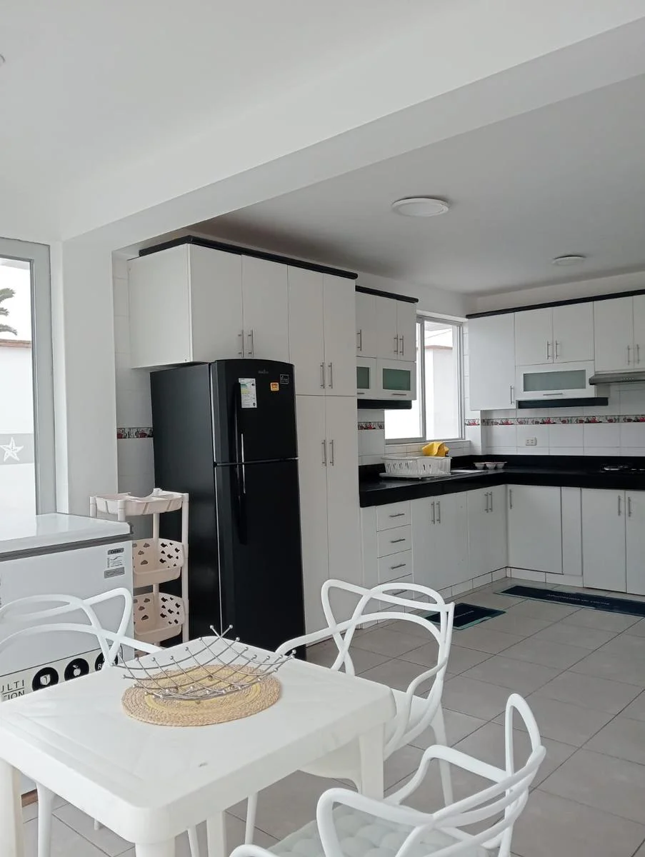 • Zonas Sociales Acogedoras: Disfruta de una sala-comedor amplia rodeada de vidrios, que permite la entrada de luz natural, aire marino y ofrece una vista maravillosa.