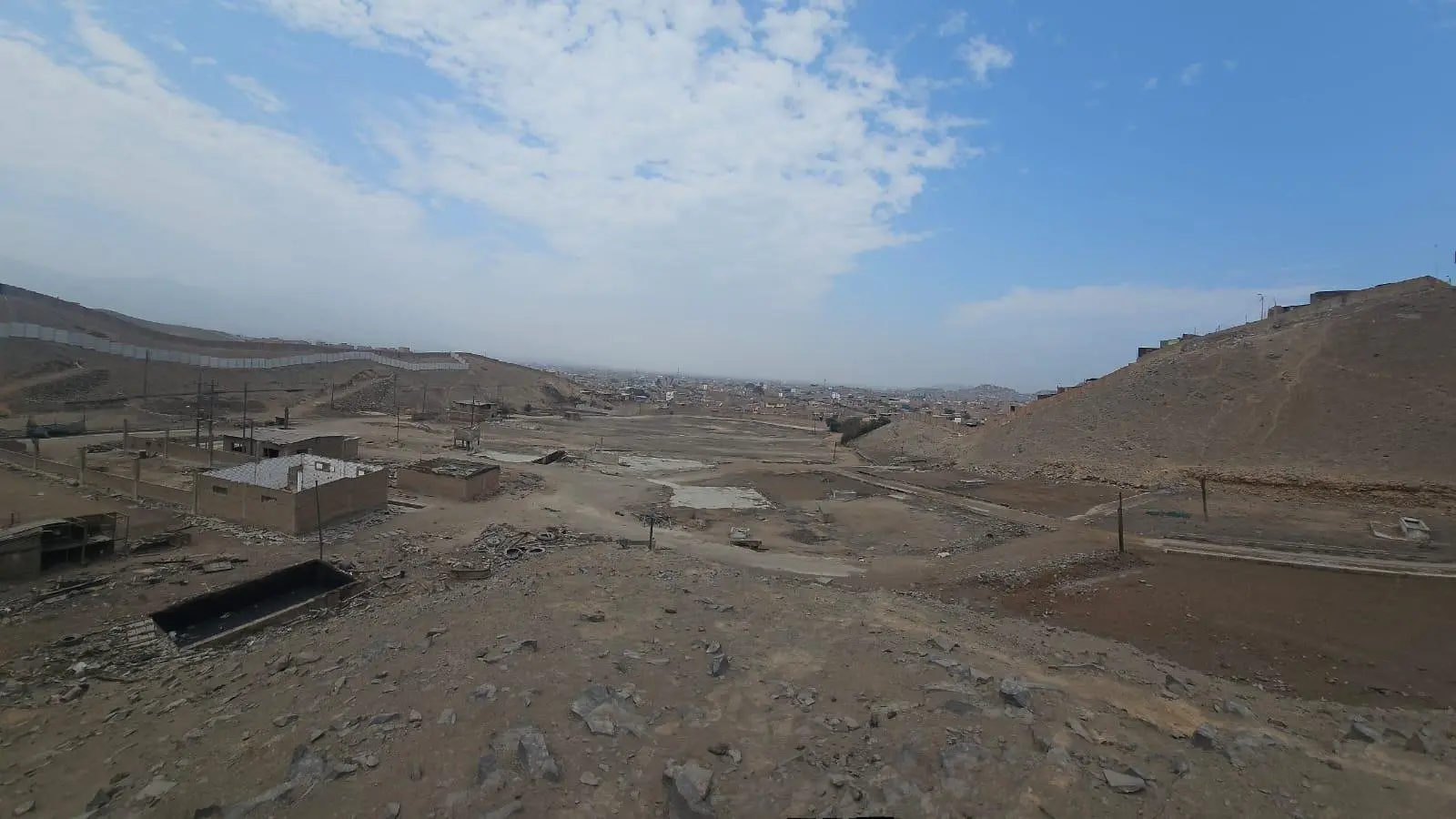 Se trata de un terreno eriazo usado como establo, cuenta con edificaciones de uno a dos pisos. La distribución del inmueble es la siguiente: Establos, depósitos, oficinas, taller mecánico, zona de almacén de alimentos, procesamiento de leche, vivienda y área libre. Cabe resaltar que el inmueble cuenta con un frente de 176.09 ml de los cuales 30 ml son trocha carrozable y 146.09 ml son trocha peatonal de ancho pequeño.