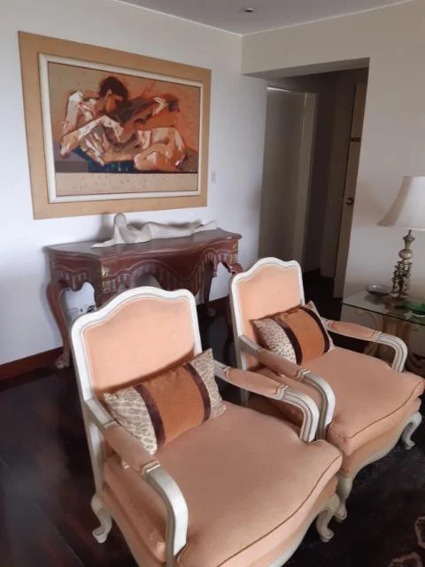 Areas comunes 10 pisos, amoblado y equipado, 25 años de antiguedad, vista al golf, moderno, piso 7, 2 departamentos por piso, 20 departamentos en total, guardianía, flat. Hall de ingreso, sala, comedor, comedor de diario, cocina, sala de estar, 2 dormitorios, 2.0 baños, 1 baño incorporado, 1 cuarto de servicio, 1 baño de servicio, lavandería, pisos de madera en área social, pisos de madera en área privada. Terraza, piscina, cochera tipo techada, 2 ascensores, ascensor. Areas comunes, permite mascotas, parrilla, jacuzzi, area de bbq, disponible desde el ****.