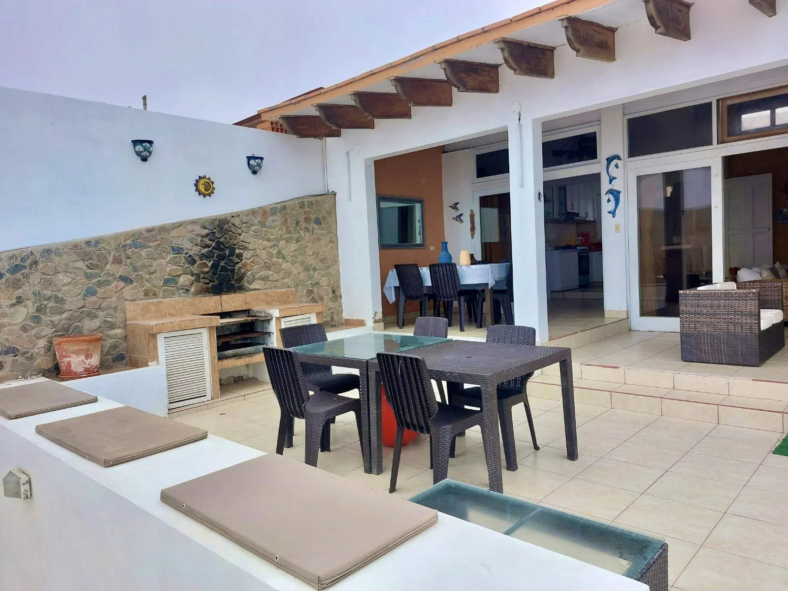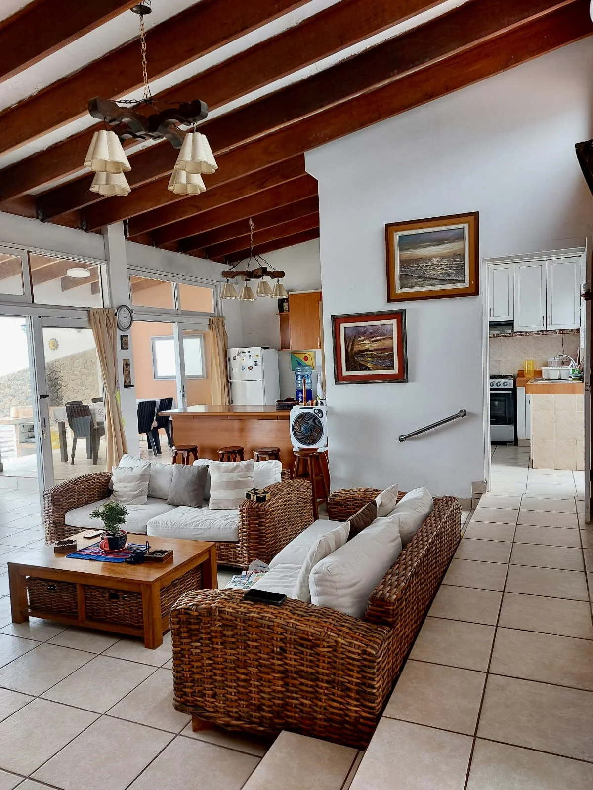 Dos amplías terrazas de 50 metros cada una, se puede construir una piscina , sala comedor con mampara de vidrio que comunica con la terraza , cocina abierta , 3 dormitorios, 2 1/2 baños , lavandería, estacionamiento para 5 autos, se vende amoblada .