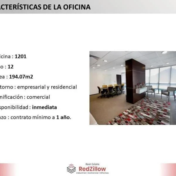ALQUILER DE OFICINA IMPLEMENTADA m SURCO TIPO Amplia oficina de m modernamente implementada en el piso del edificio La Encalada ubicado en la zona empresarial del distrito de San IsidroUBICACIN Av La Encalada en el distrito de Surco en zona empresarial y comercial CARACTERSTICAS DE EDIFICIO Sala de Usos Mltiples Sala de Proveedores Aire Acondicionado Grupo Elctrgeno CONTACTAR Celular WhatsApp Igualmente puedes comunicarte para revisar nuestra disponibilidad de locales similares o alternativos que se ajusten a tu necesidad Somos RedZillow especialistas en servicios corporativos abarcando desde la representacin de propietarios y arrendatarios hasta el financiamiento de capital a largo plazo Nuestra meta es ayudarte a fortalecer y enriquecer la inversin en tu negocio ocupndonos de soportar tus decisiones inmobiliarias sobre espacios de oficinas almacenes retail terrenos y plantas industrialesSomos RedZillow especialistas en servicios corporativos inmobiliarios con alto compromiso y experiencia en la representacin de propietarios compradores y arrendatarios Nuestra meta es ayudarte a encontrar el mejor espacio para negocio o actividad comercial ocupndonos de soportar tus decisiones inmobiliarias relacionadas a espacios de almacenes plantas industriales locales comerciales oficinas y terrenos