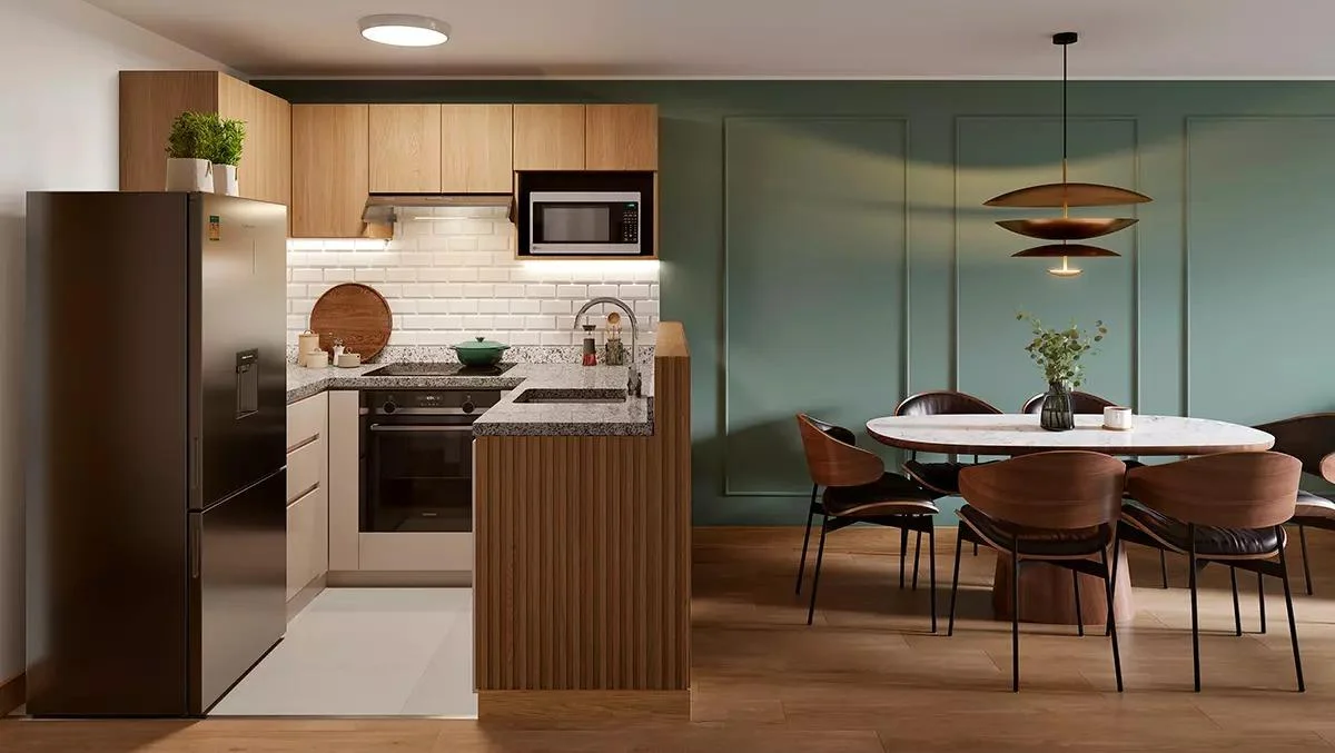 - Amplia cocina americana con muebles altos y bajos