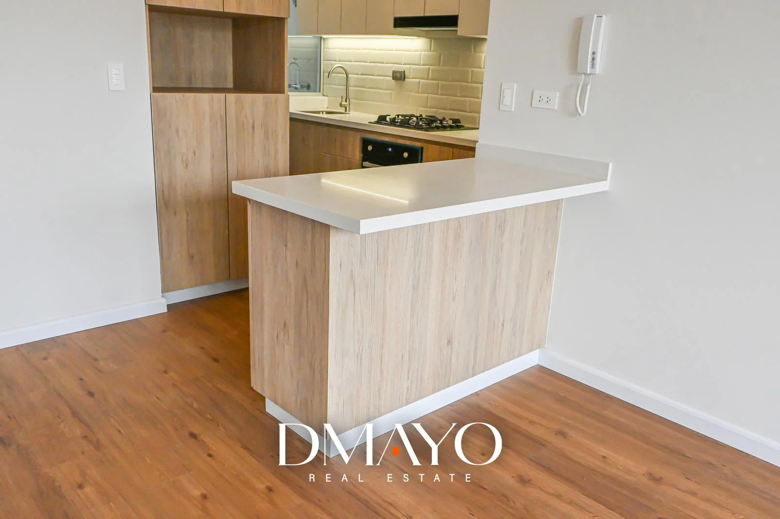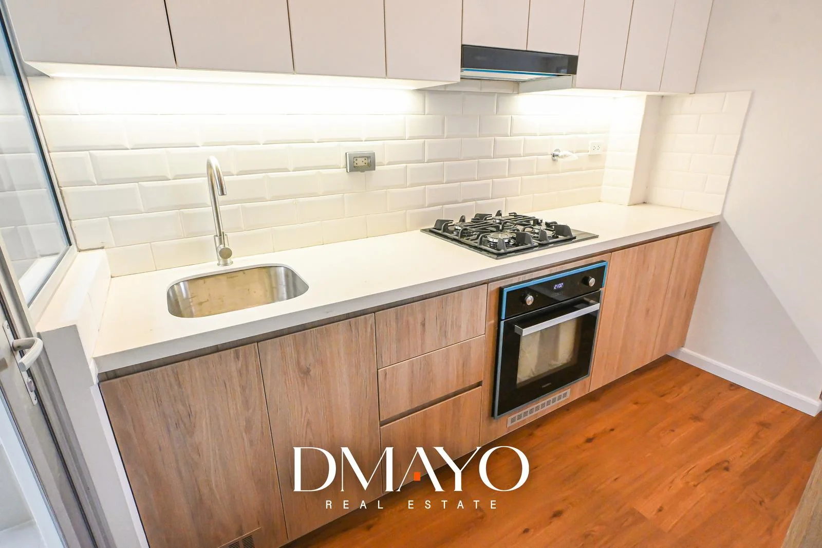 - Cocina equipada con campana, encimera y horno.