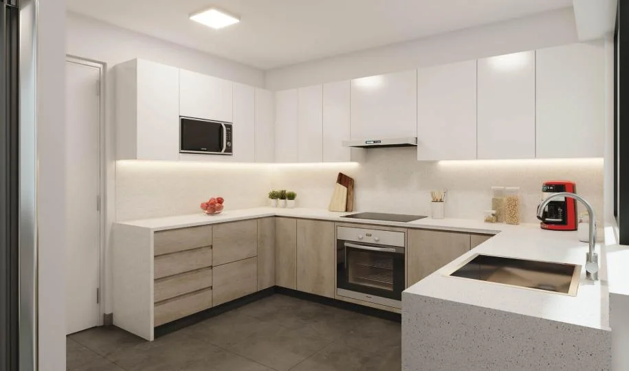 Cocina cerrada, equipada con encimera, campana extractora y horno