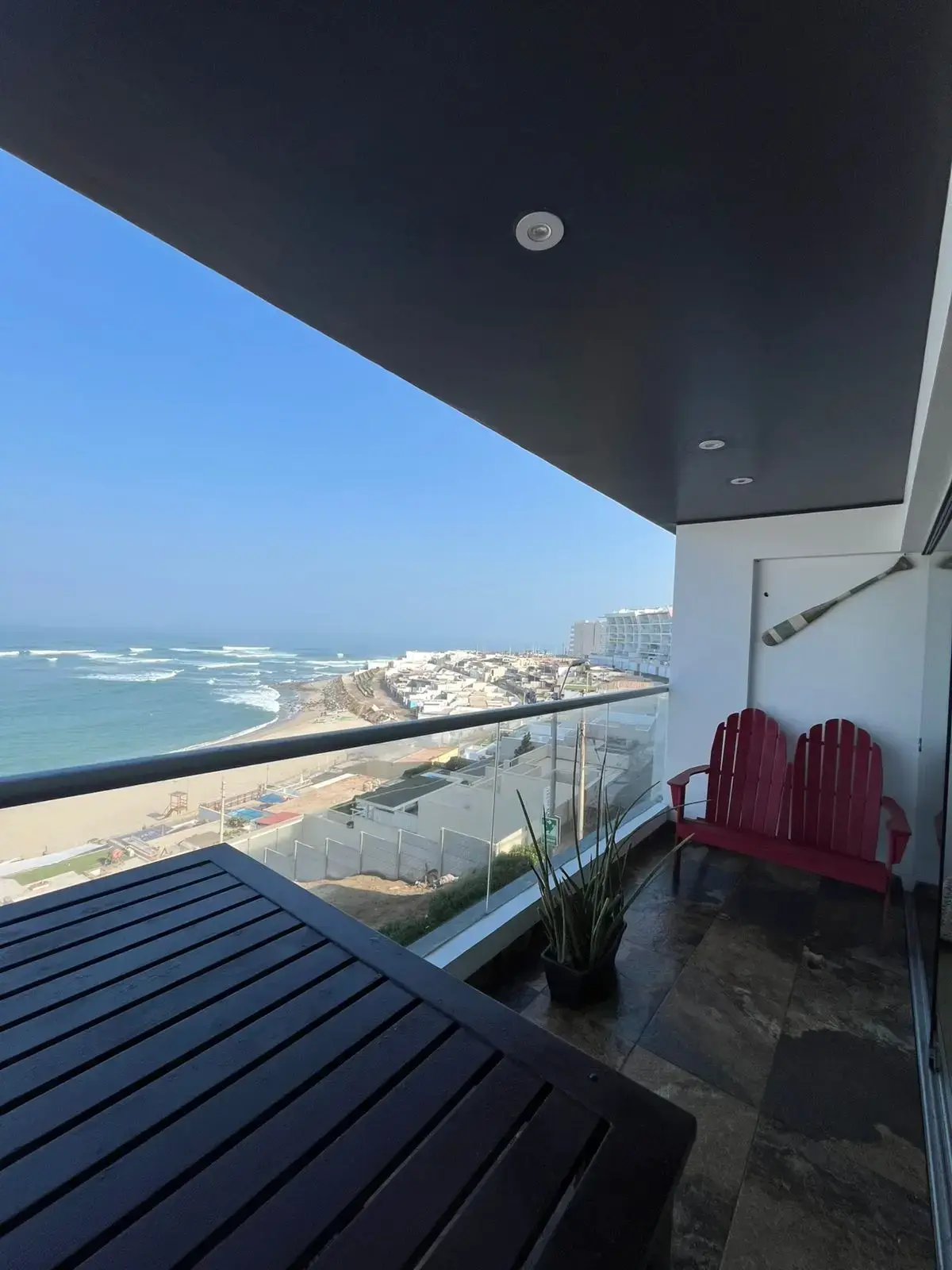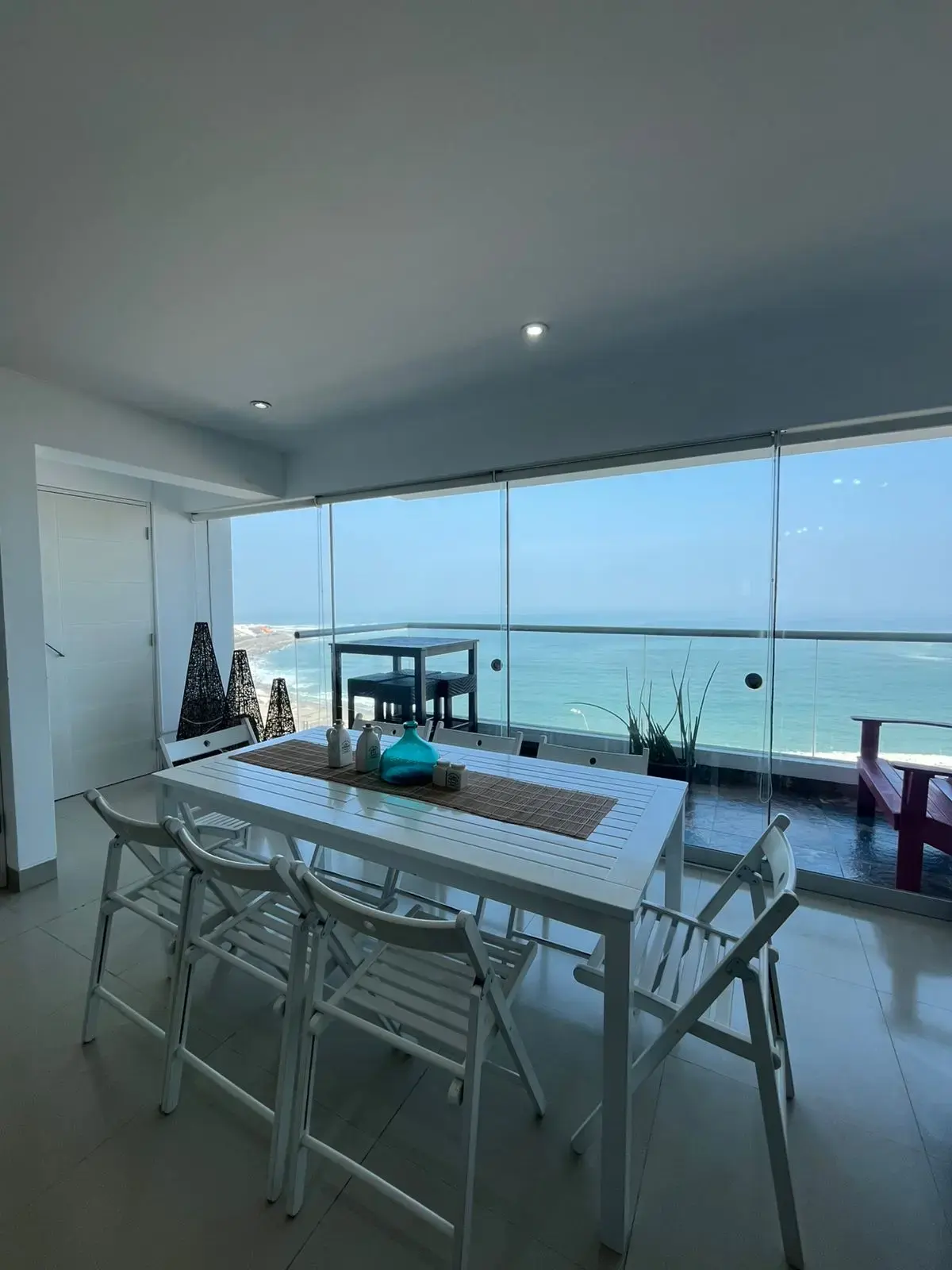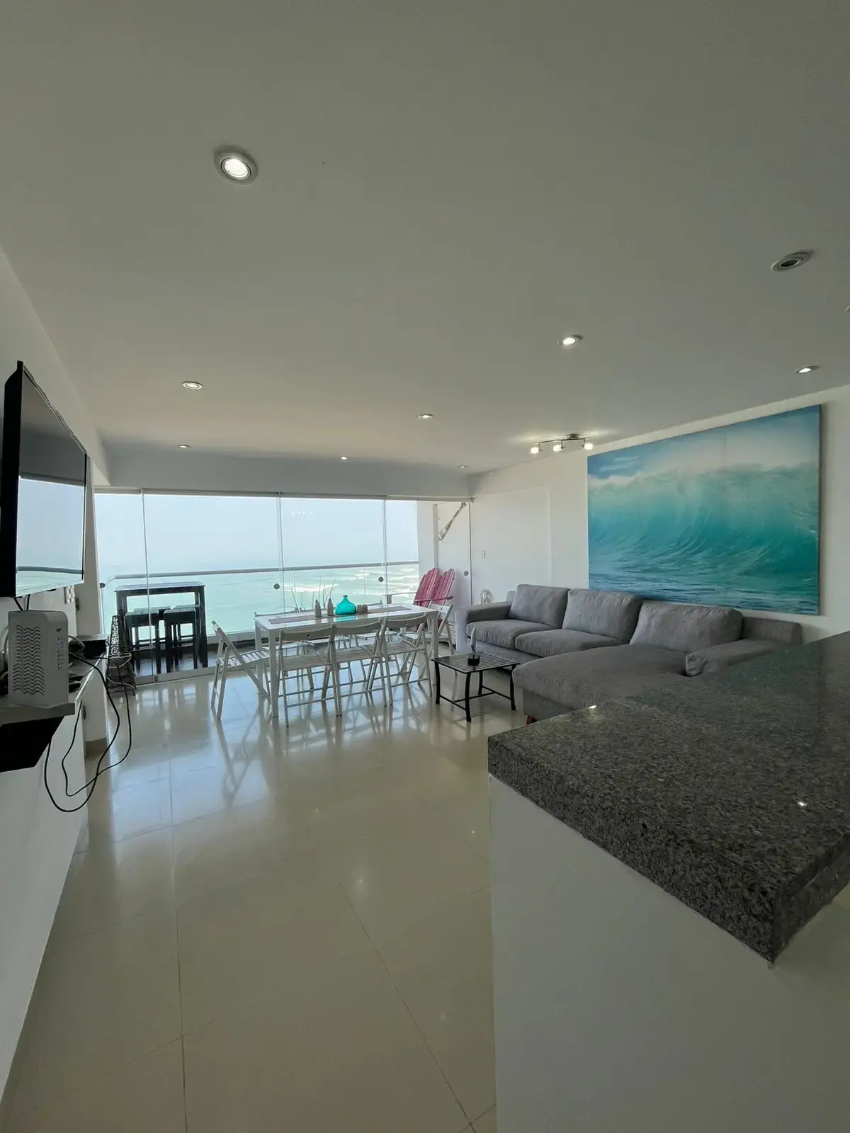 El mismo cuenta con un amplio balcón con vista a toda la playa de caballeros, isla de san pedro y la caída del sol se ve todo el año ! Amplia sala y comedor, cocina integrada con barra desayunador, zona de lavandería y baño. Pasillo de distribución hacia los dormitorios ubicados en la parte posterior del depa. Dormitorio principal amplio, con closet y baño. Dos dormitorios , baño para los dormitorios y medio baño para la visita.