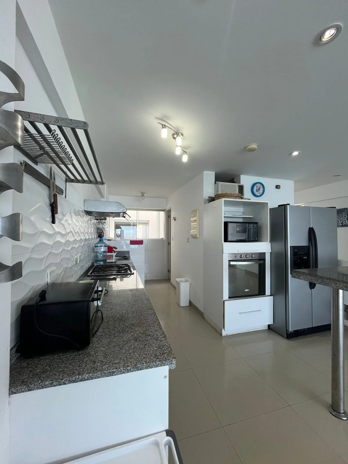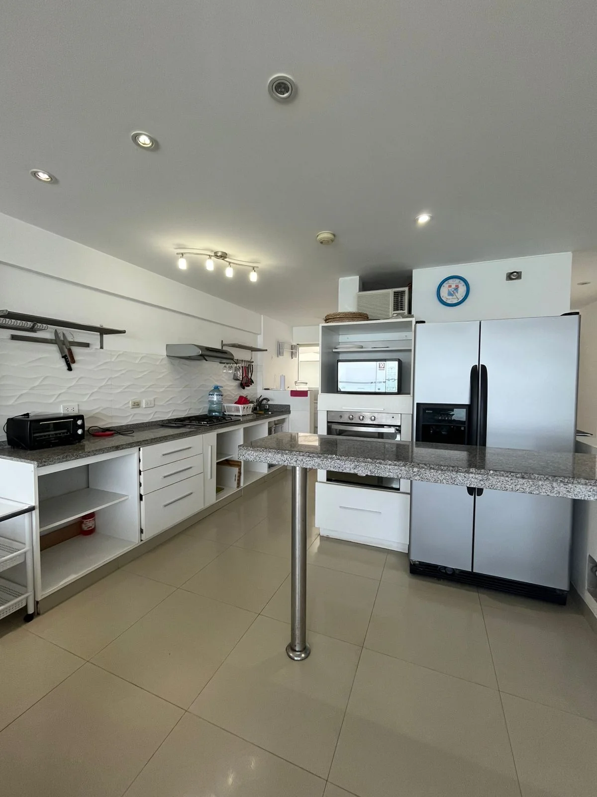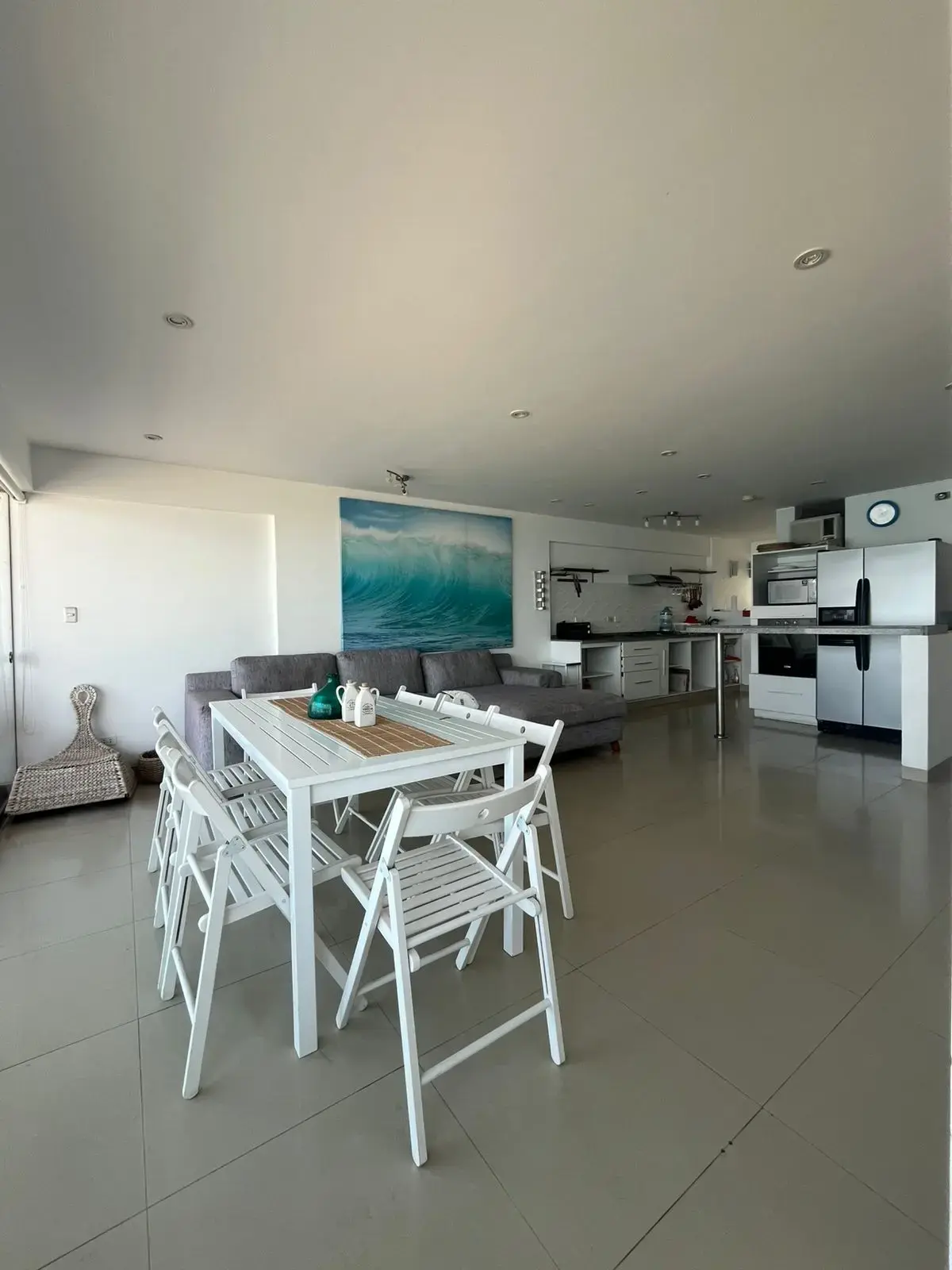El mismo cuenta con un amplio balcón con vista a toda la playa de caballeros, isla de san pedro y la caída del sol se ve todo el año ! Amplia sala y comedor, cocina integrada con barra desayunador, zona de lavandería y baño. Pasillo de distribución hacia los dormitorios ubicados en la parte posterior del depa. Dormitorio principal amplio, con closet y baño. Dos dormitorios , baño para los dormitorios y medio baño para la visita.