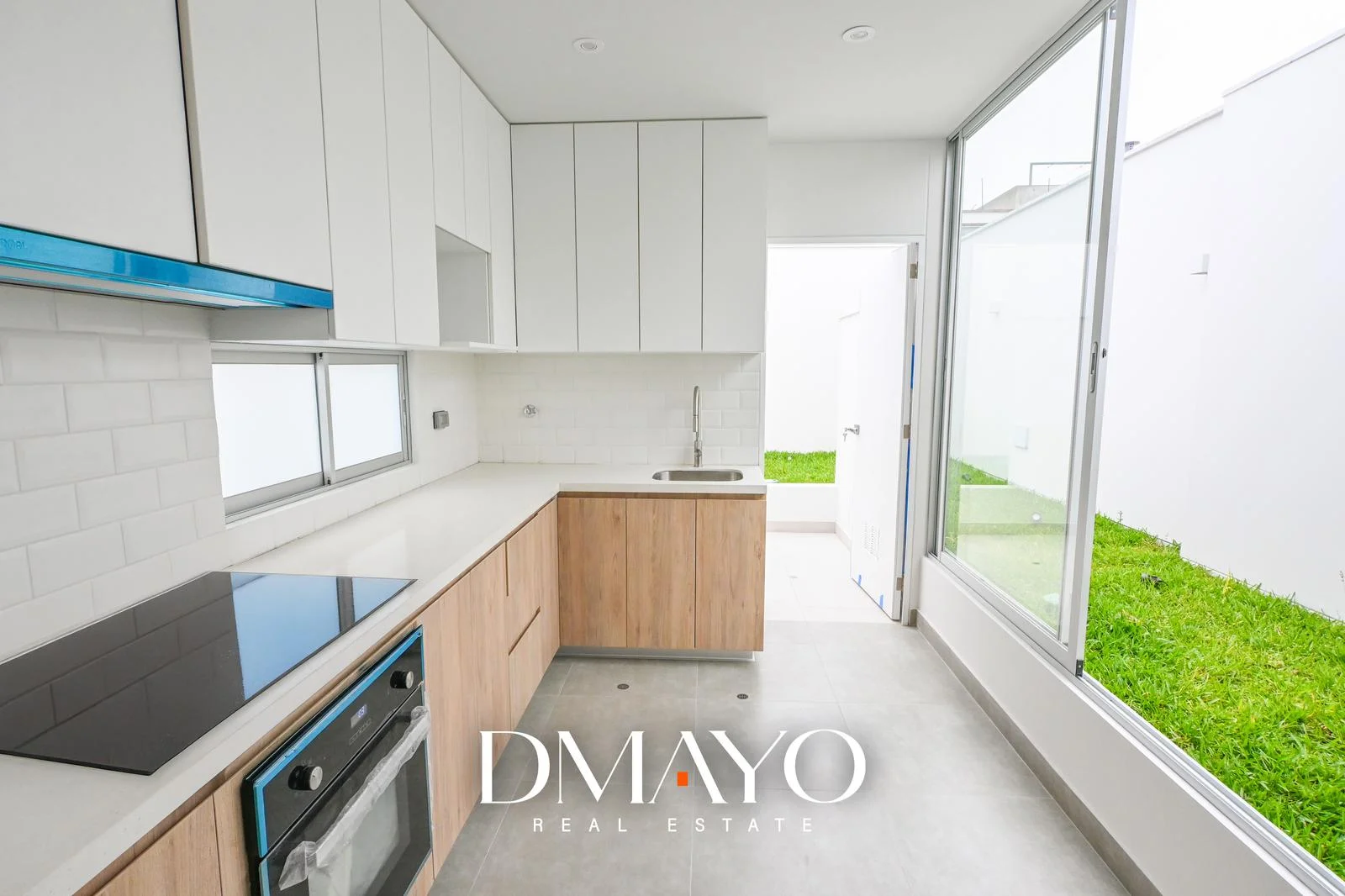 - Moderna cocina cerrada, equipada, con muebles altos y bajos, con excelente luz natural y un jardín que rodea hasta la lavandería.