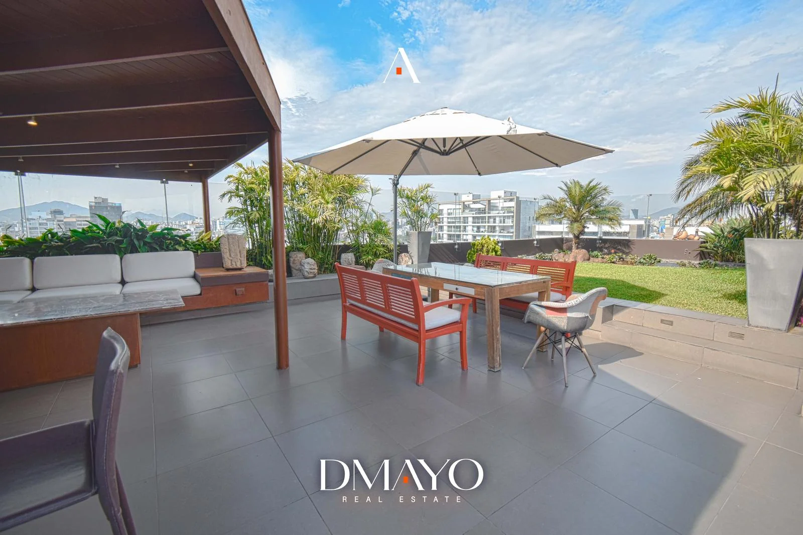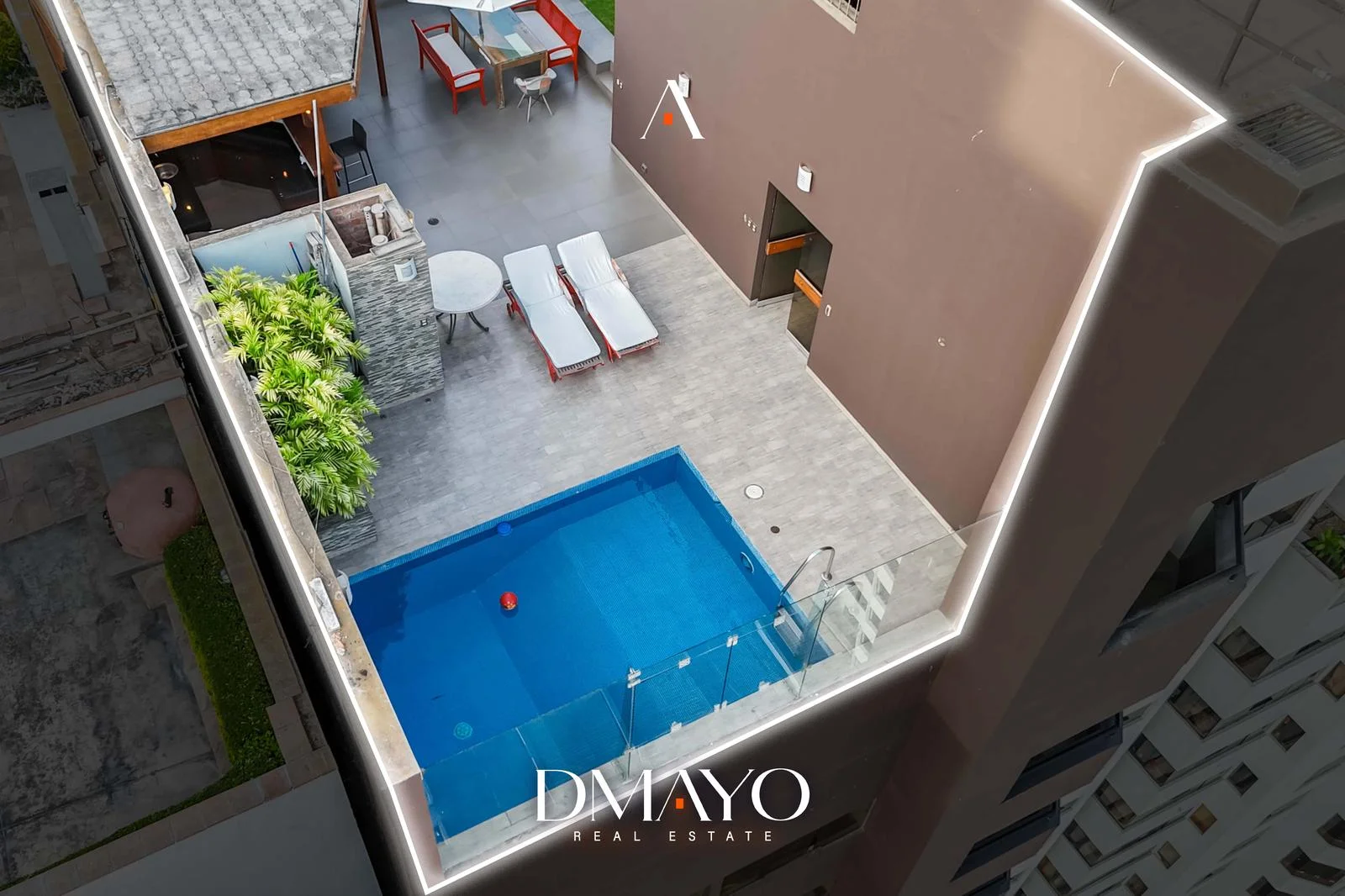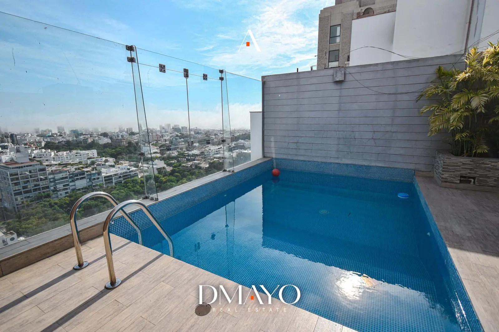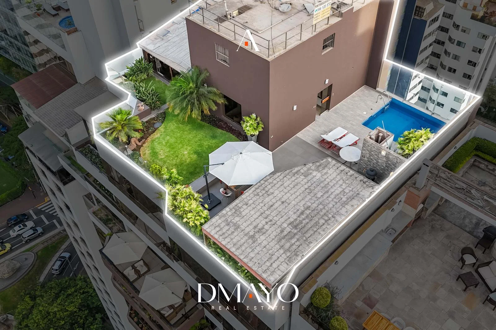 En el último nivel se encuentra la zona social: una amplia terraza con jardín y piscina al aire libre, desde donde se puede ver la ciudad y el mar. Además, el departamento incluye sala de cine y bar, ideales para disfrutar y recibir invitados.