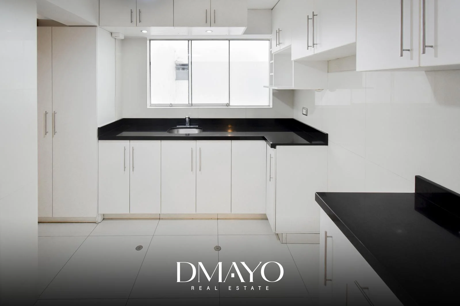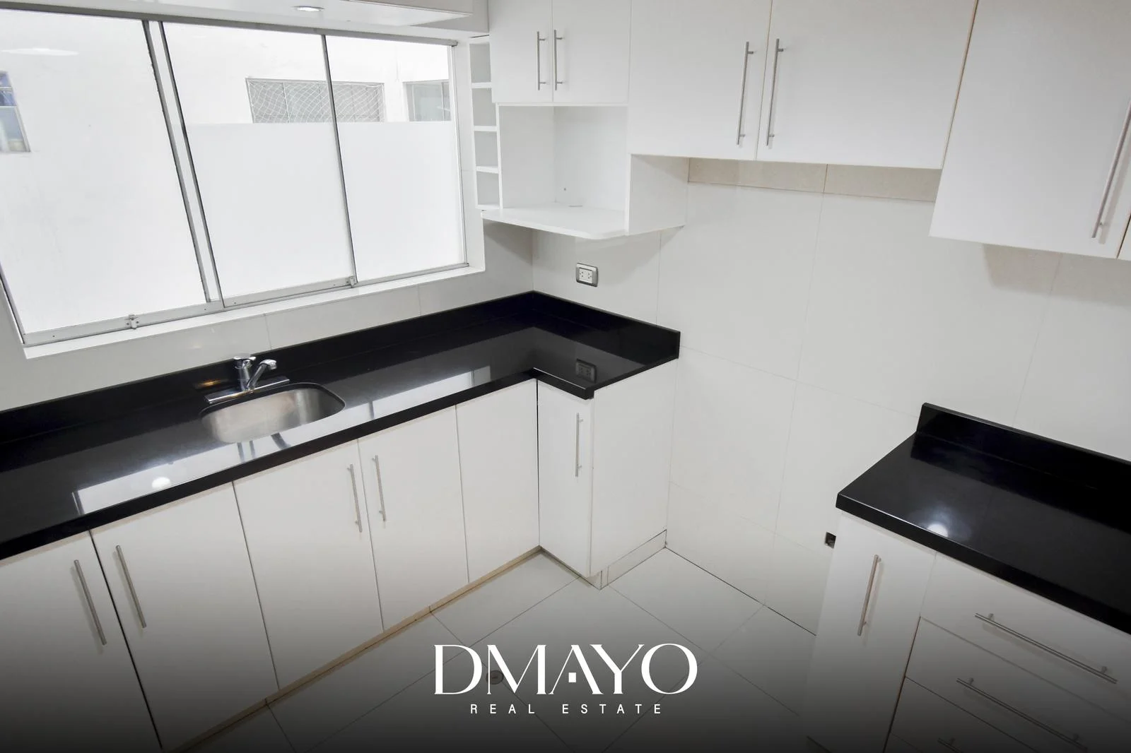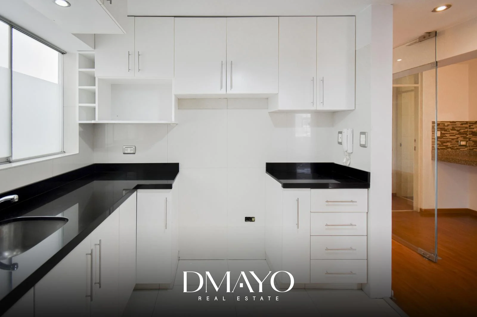 -Cocina independiente con Tablero de Granito negro, muebles altos y bajos de melamine